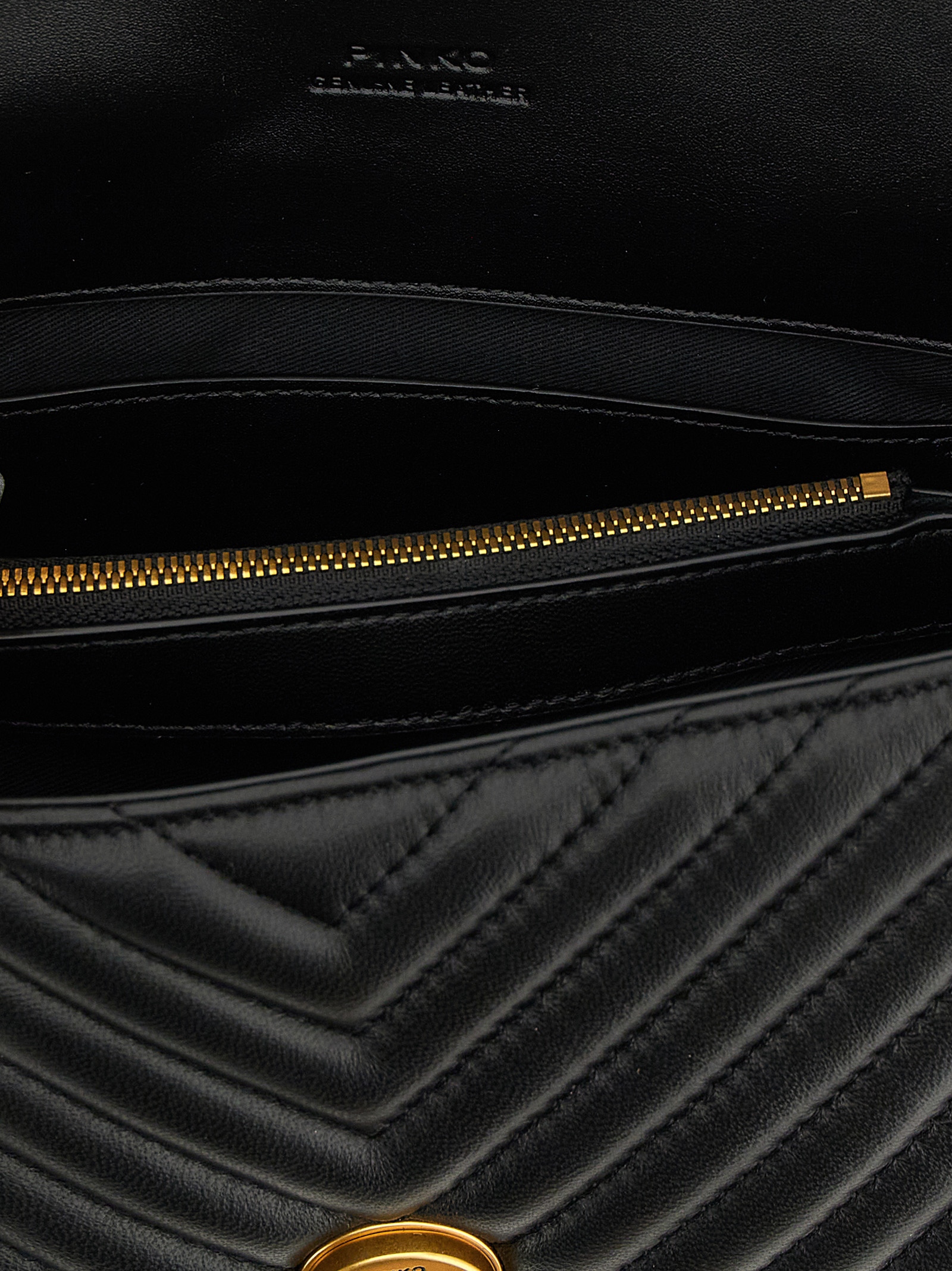'Mini Lady Love Puff' handbag in quilted nappa leather with chevron pattern, magnetic flap closure with iconic ‘Love Birds Diamond Cut’ metal buckle, fixed handle, suede microfiber lining, chain shoulder strap with removable nappa leather shoulder pad.