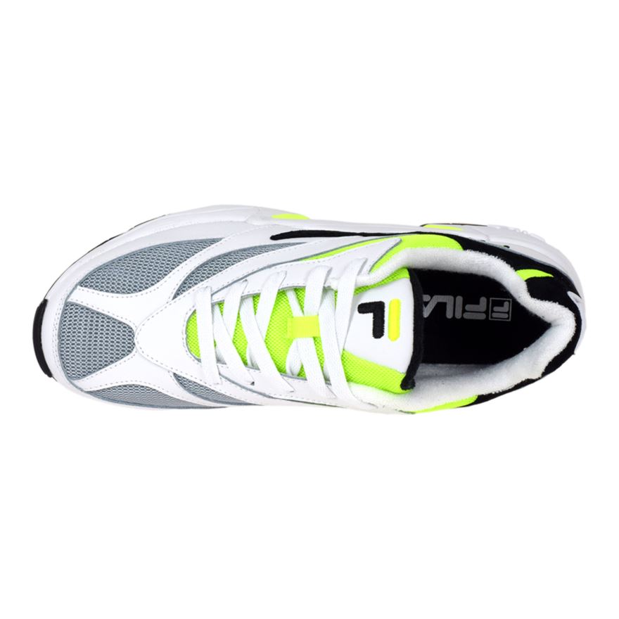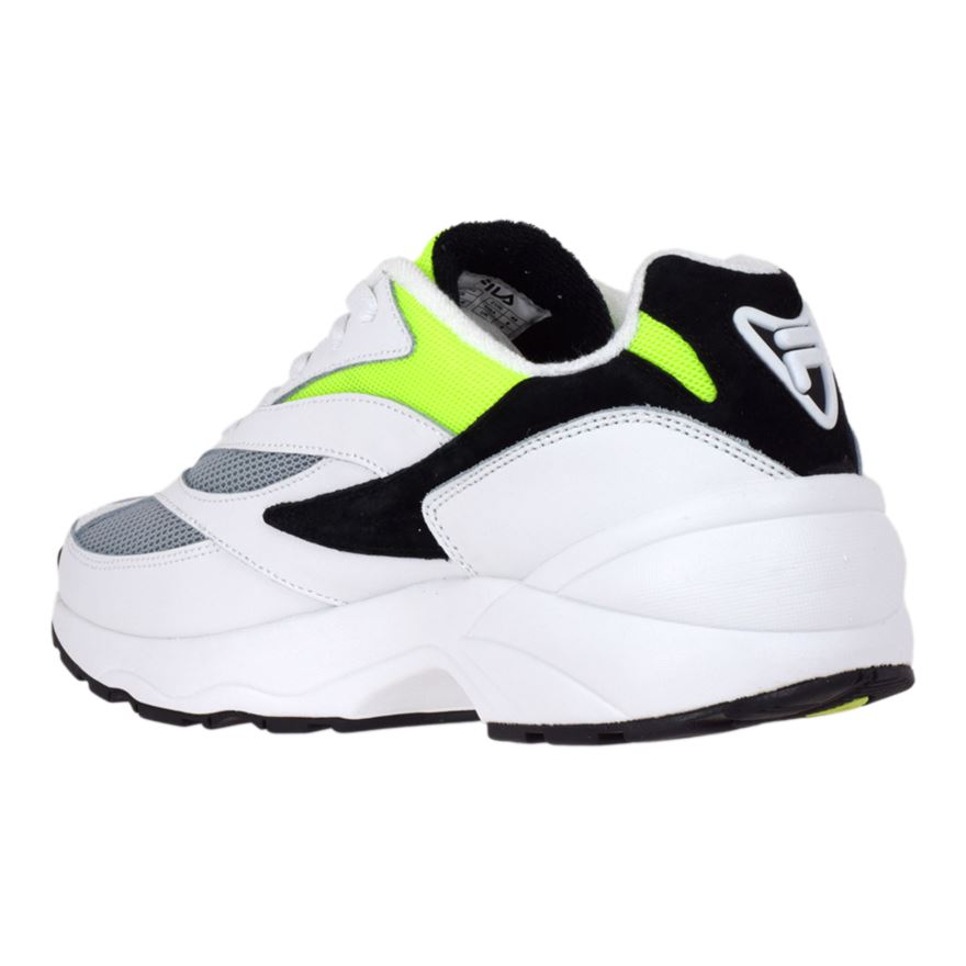 Buty męskie Fila V94M CB w kolorze białym z jaskrawymi elementami. Cholewka została wykonana ze skóry.