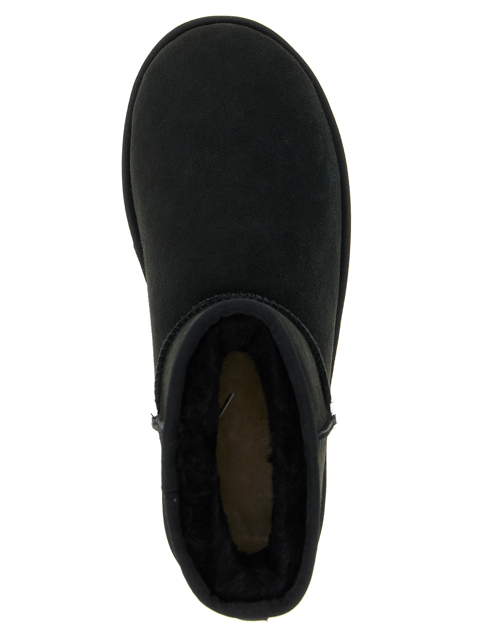 'Classic Mini II' pre-treated suede ankle boots to resist moisture and stains, overlock stitching, tone-on-tone logo patch at the back, upside-down sheepskin lining and insole, EVA Treadlite sole by UGG™.