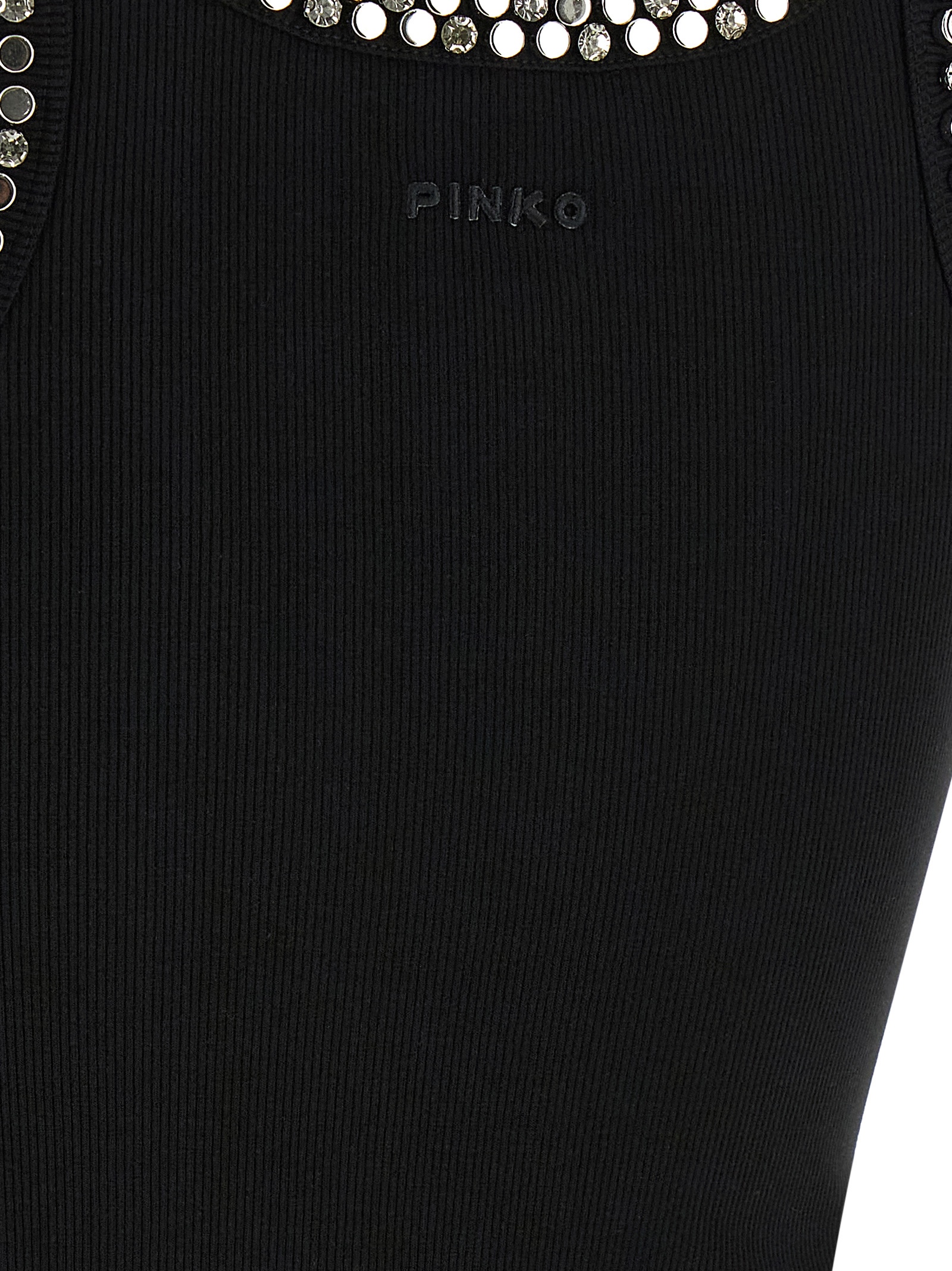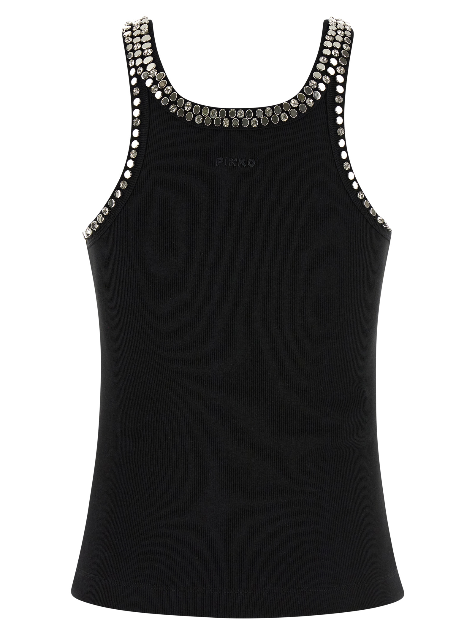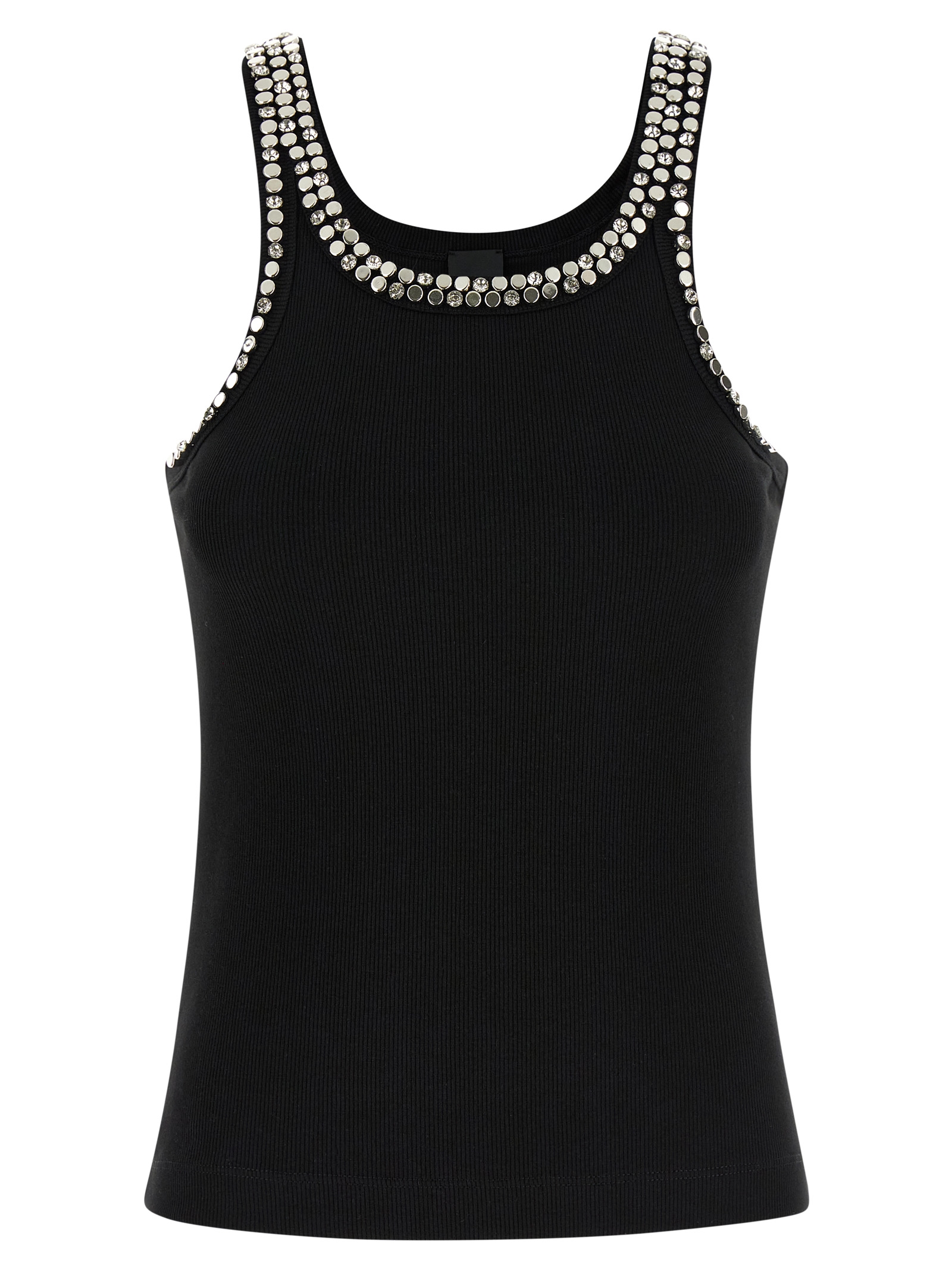 'Coriandoli' tank top in ribbed stretch cotton blend with metal studs and crystal appliqué on the front and back, round neckline, tone-on-tone logo embroidery at the back.