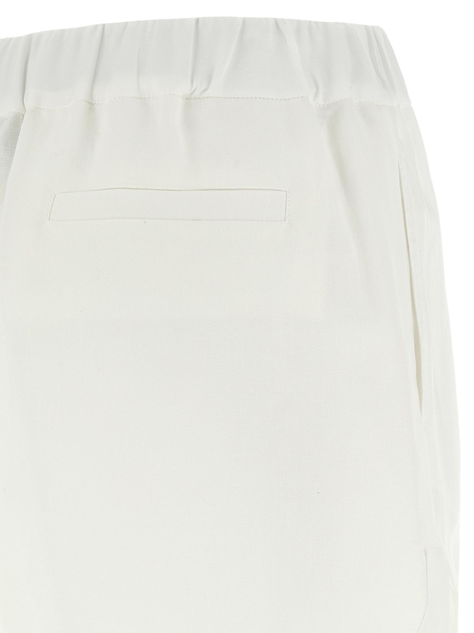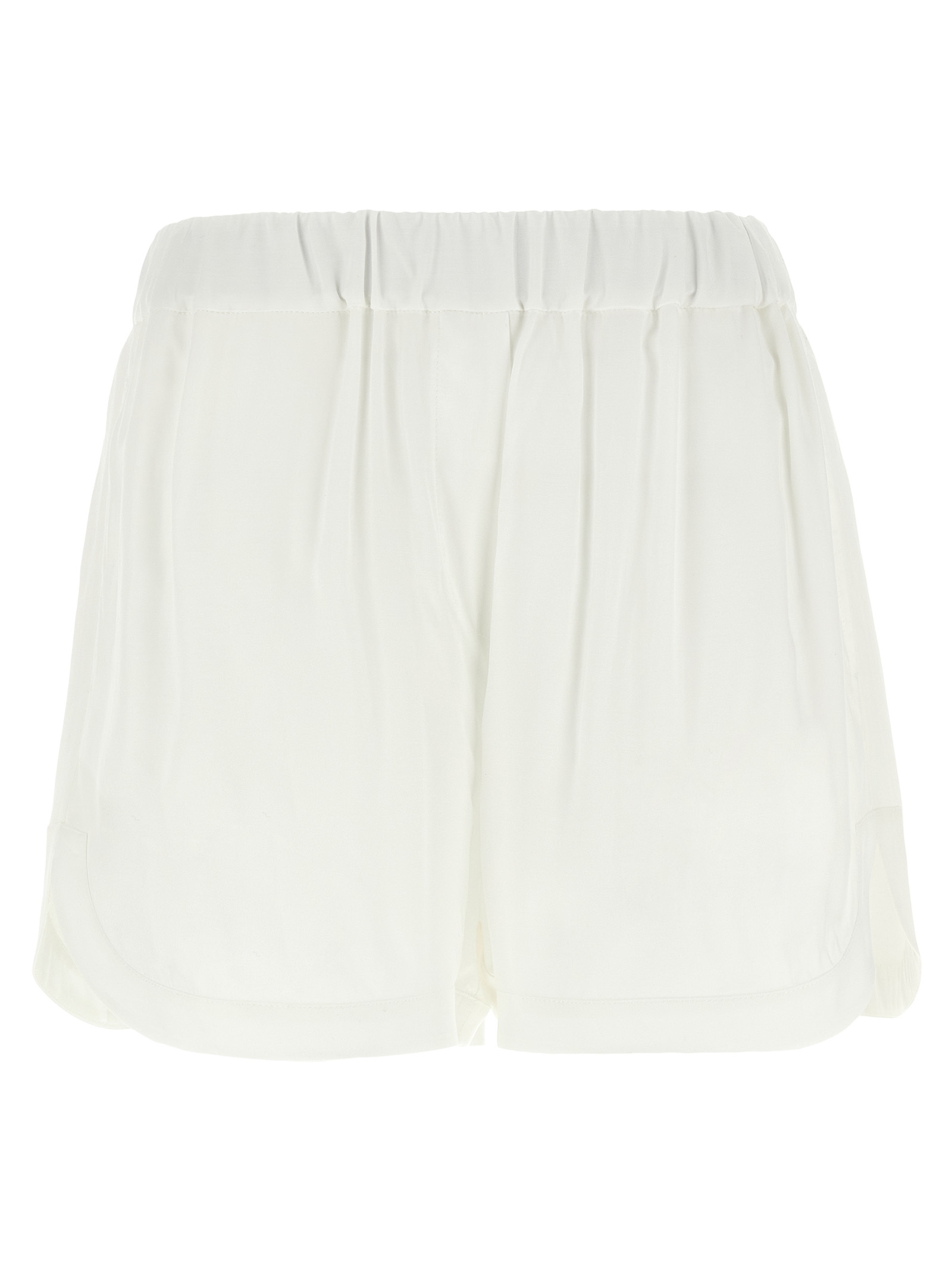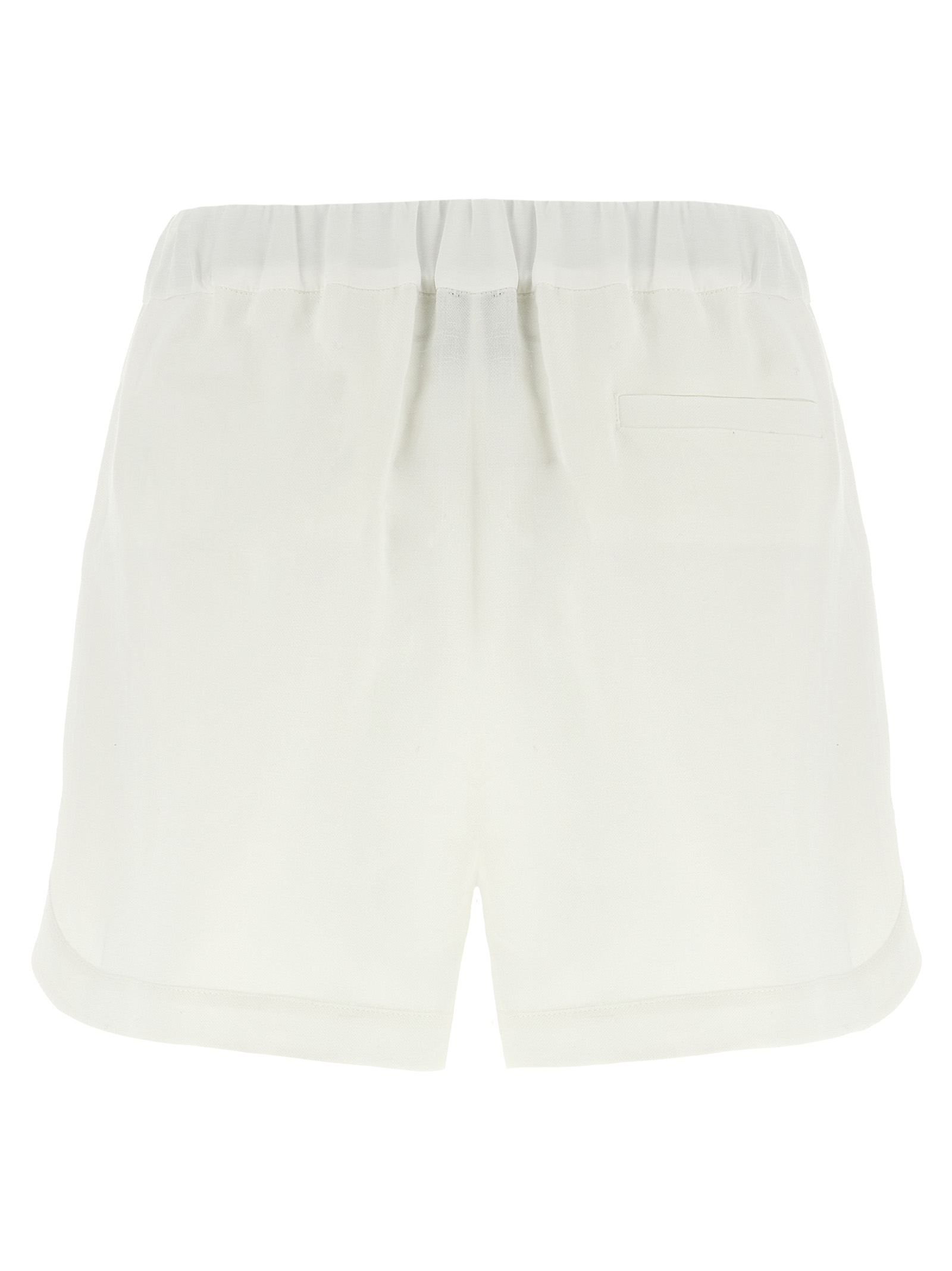 'Stai con me' linen shorts with elastic waistband and shaped hem.