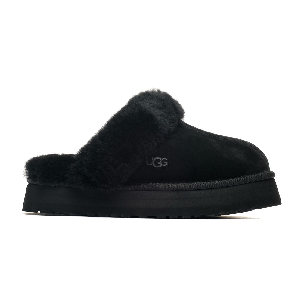 Model Disquette to nowoczesna i odważna interpretacja klasycznego klapka UGG. Dzięki 1-calowej platformie w stylu retro zapewnia unikalny, wyrazisty wygląd, a przy tym zachowuje wygodę typową dla marki. Wykonany z zamszu i owczej skóry, oferuje całodzienny komfort oraz lekkość, nadając stylizacjom niepowtarzalnego charakteru. Odpowiedni zarówno do użytku domowego, jak i na zewnątrz.