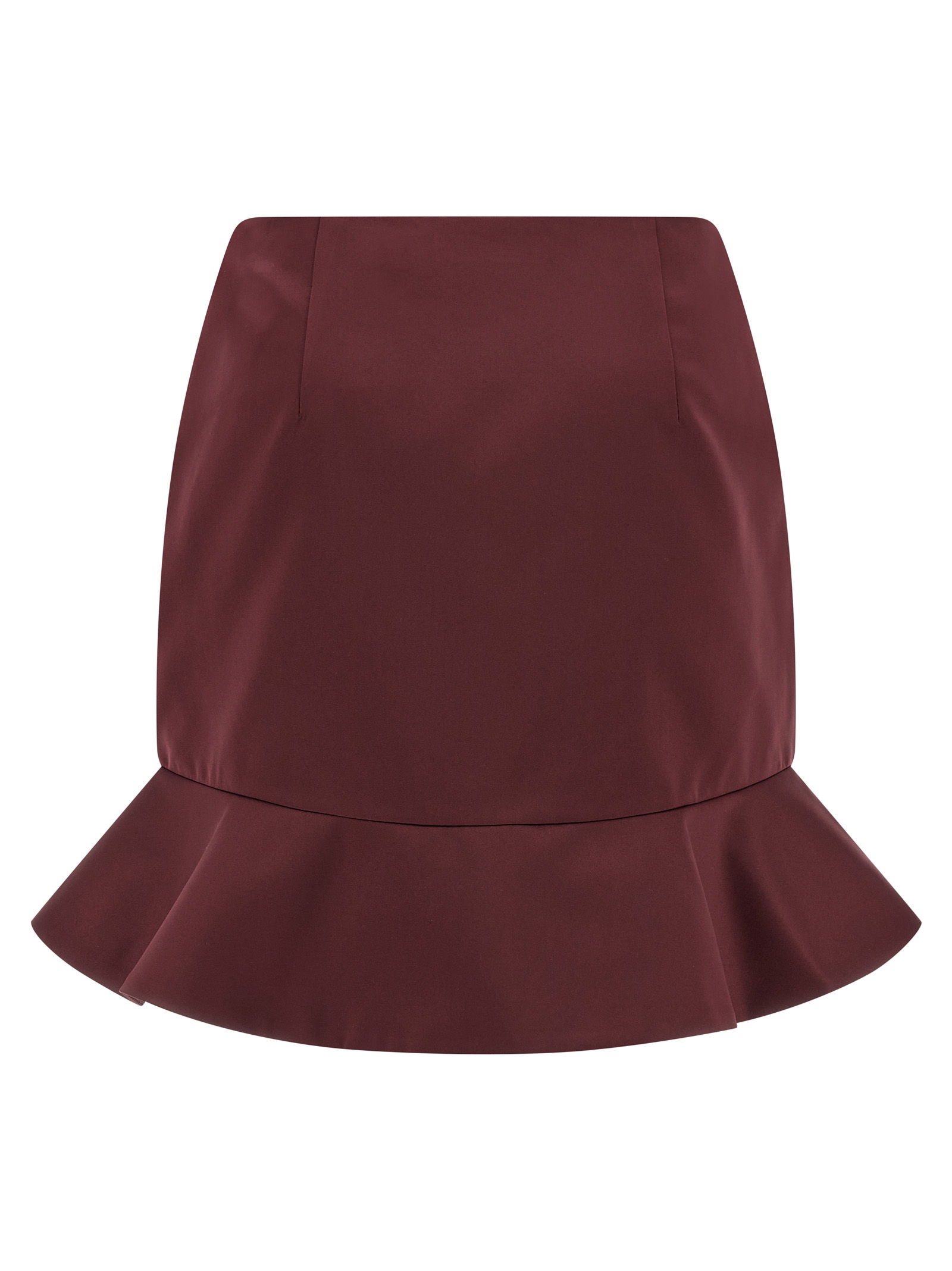 Satin mini skirt, front and back pincer, side zip closure, lining, flounce on the hem.
