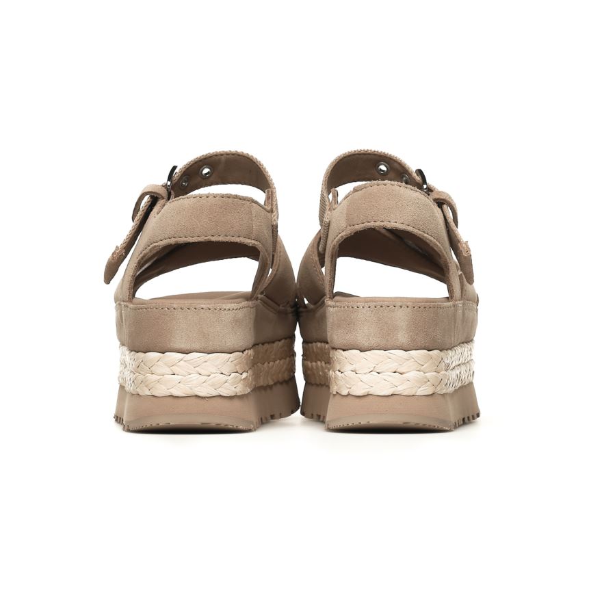 Model Aubrey Ankle to sandały na platformie, które łączą retro klimat z eleganckim wykończeniem. Wykonane z zamszu oraz tkaniny z recyklingu, posiadają charakterystyczne skrzyżowane paski na podbiciu i regulowany pasek przy kostce dla lepszego dopasowania. Pleciona platforma z rafii i lekka podeszwa Sugarcane EVA gwarantują wygodę przez cały dzień.