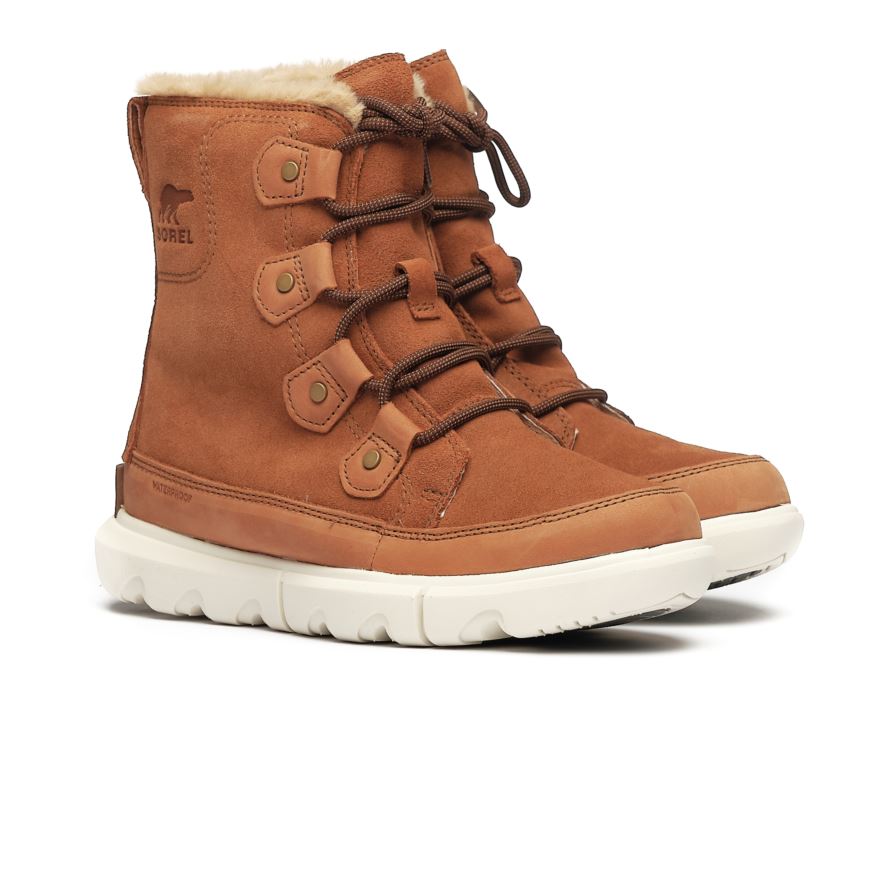Obuwie SOREL EXPLORER™ II JOAN FAUX FUR WP inspirowane sportowym stylem idealnie nadają się na zimne, śnieżne dni. Cholewka wykonana ze skóry, zapewnia wodoodporność oraz sportowy look. Izolacja o wadze 100g dostarcza wystarczającą ilość ciepła. Podeszwa zewnętrzna EVA z napisem SOREL, odpowiedzialna jest za doskonałą przyczepność w niesprzyjających warunkach.