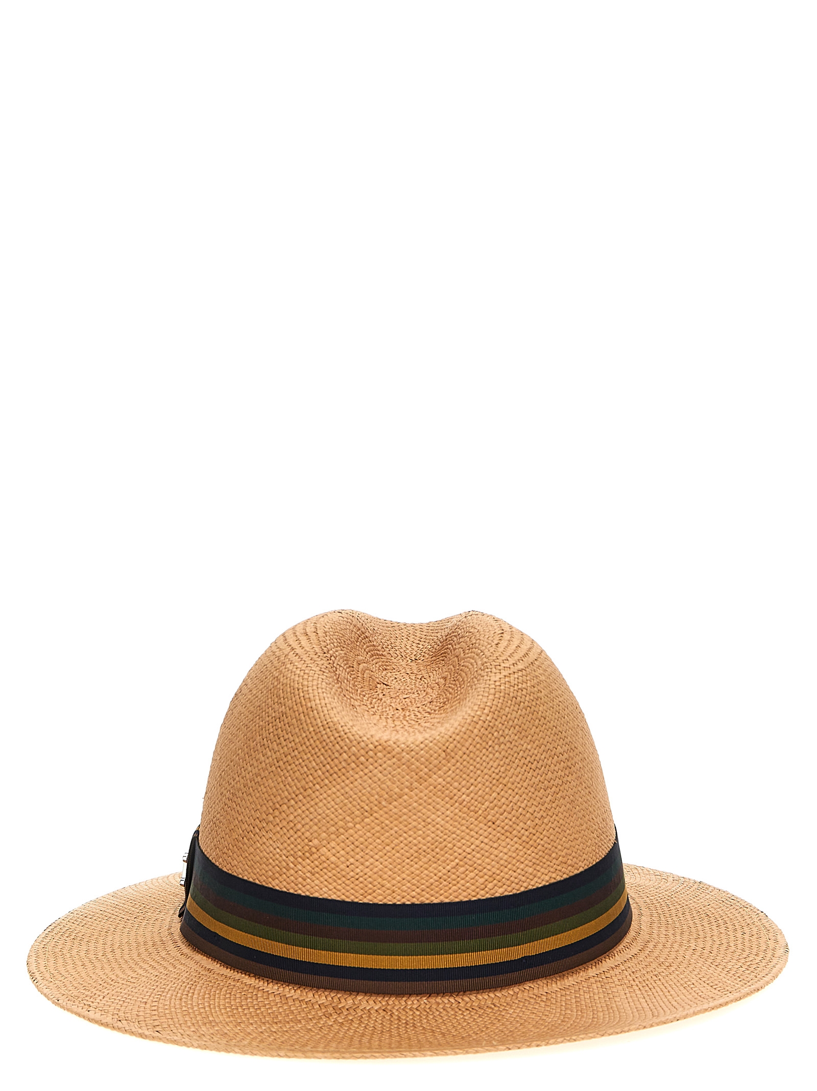 Rodesia' straw hat, wide-brimmed panama style with contrast ribbon and metal M Monogram detail.