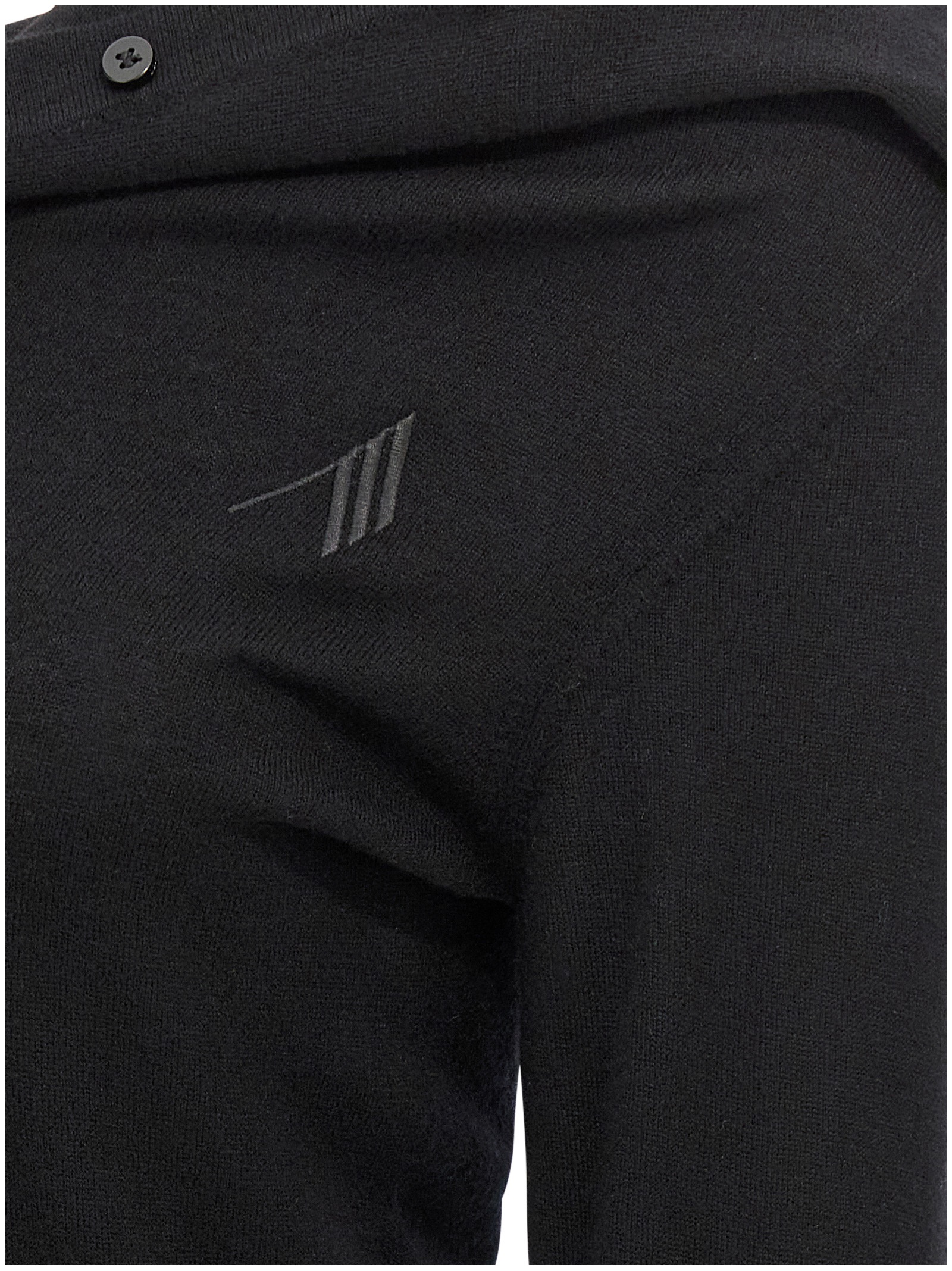 Mini dress in virgin wool and cashmere blend, modular shawl neckline, tone-on-tone logo embroidery and front button closure, long flared sleeves.