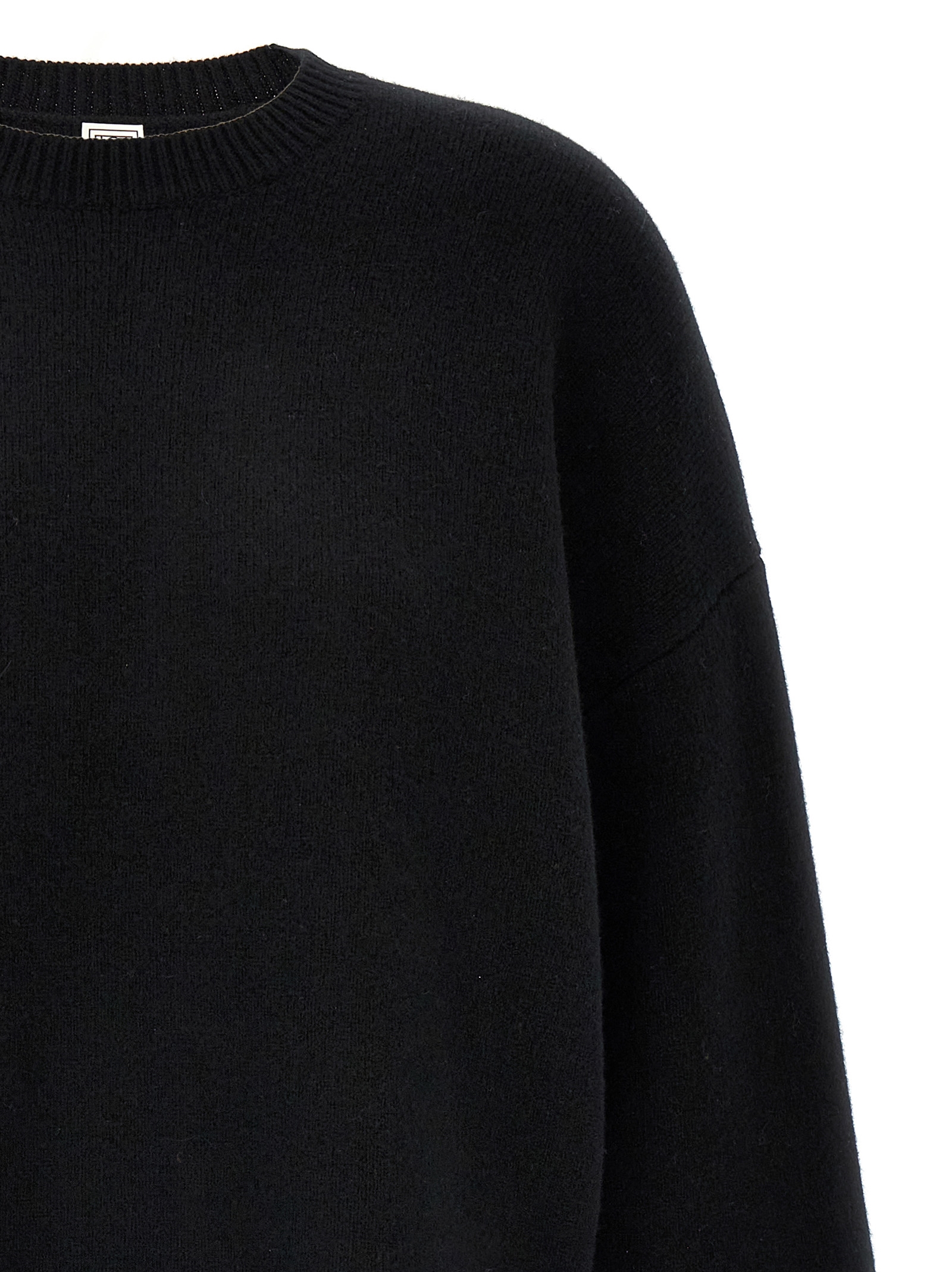 'Double-Knit' wool and cashmere blend sweater with crew neck, long sleeves with dropped shoulder cuffs, tone-on-tone logo embroidery, side slits.