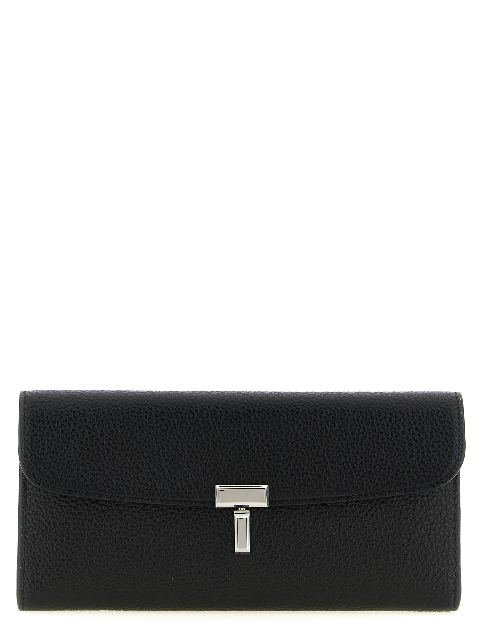 Sienna hammered leather wallet with flap closure with metal rotation 'T-lock' detail.