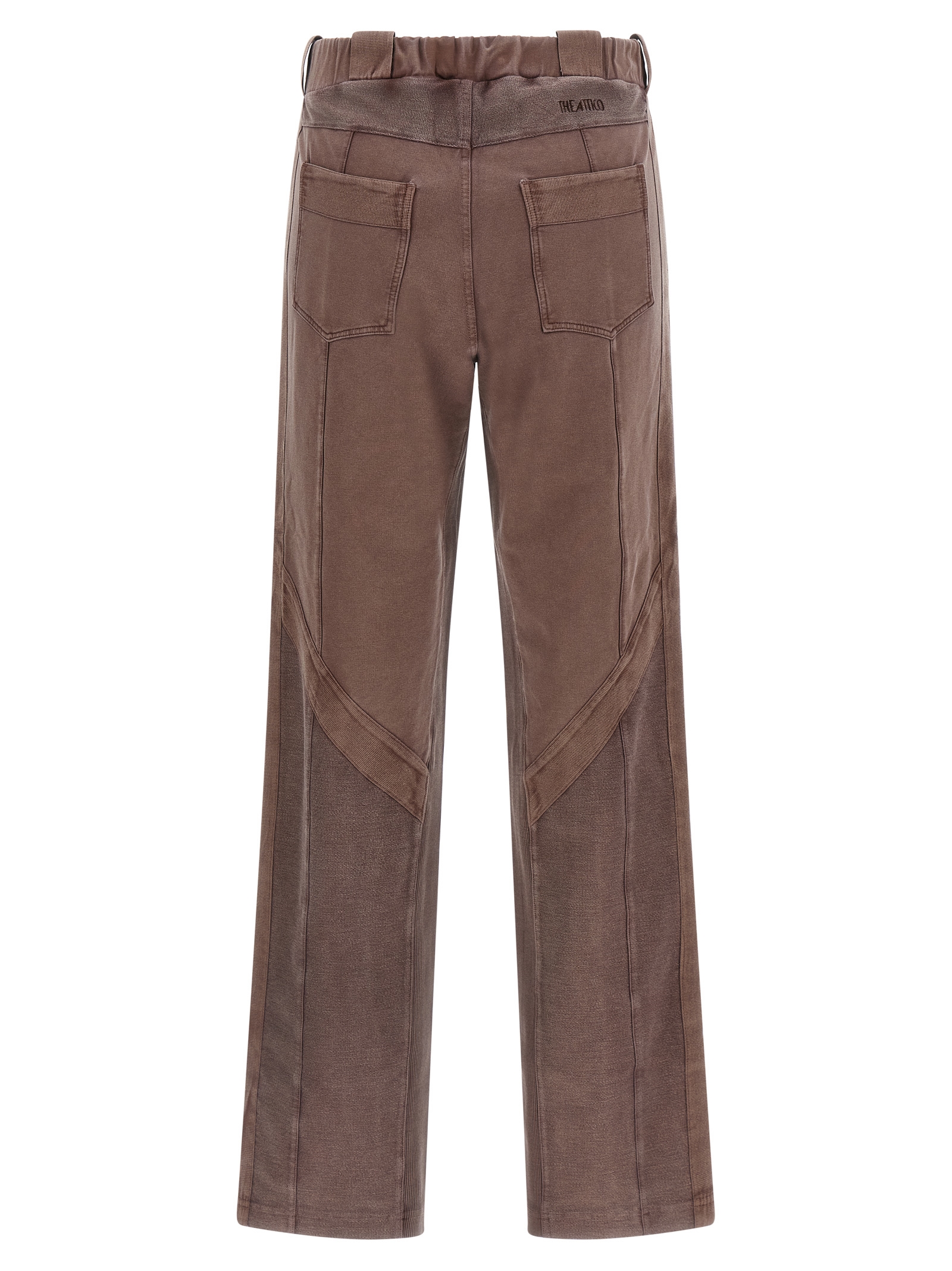 Light American fleece pants with ribbed details, trompe l'oeil flap, elastic and ribbon to tie at the waist, pockets, tone-on-tone embroidered logo on the back, front split on the leg bottom.