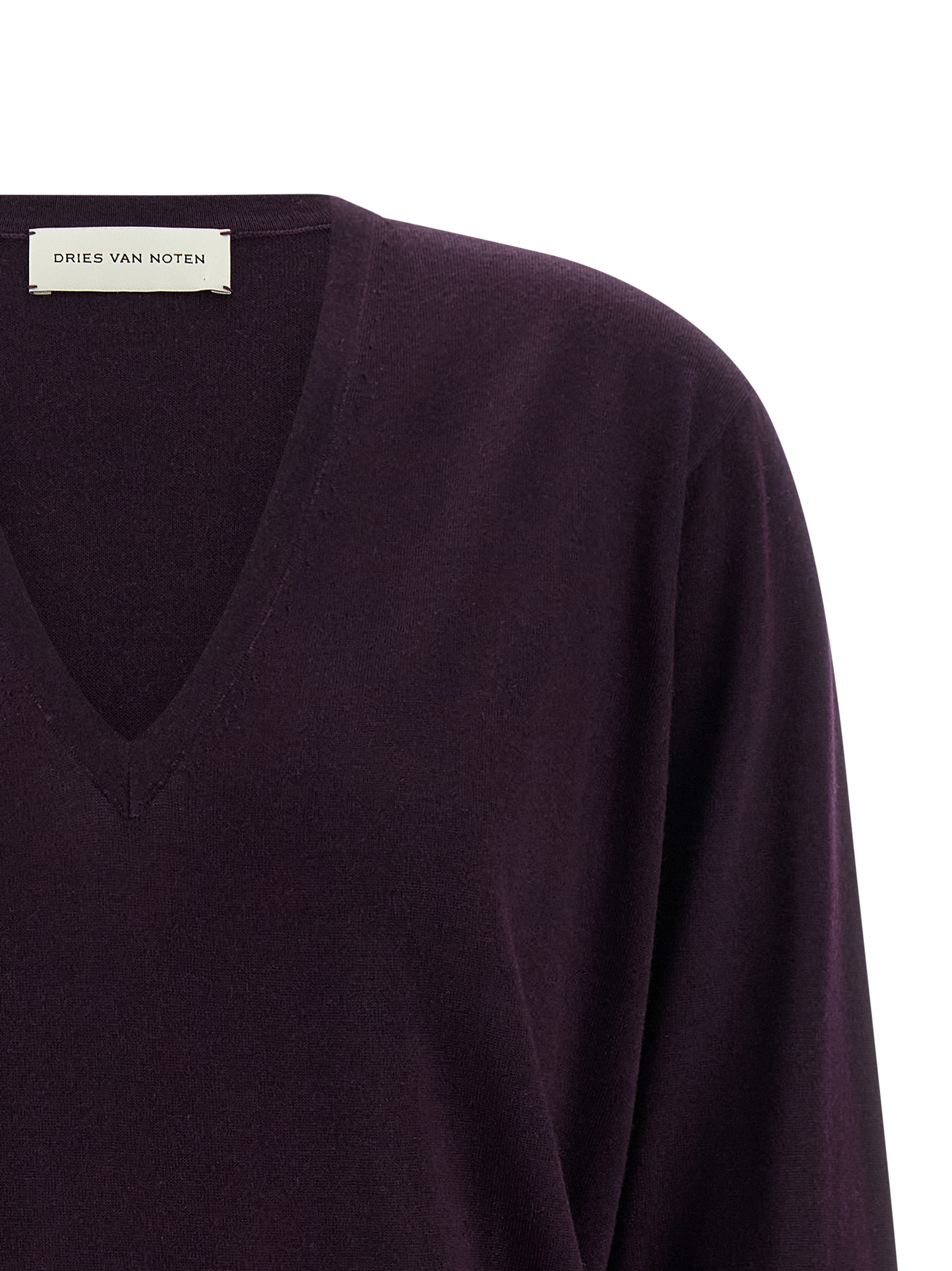 'Tuomas' sweater in lightweight merino wool with V-neck, long cuffed sleeves.