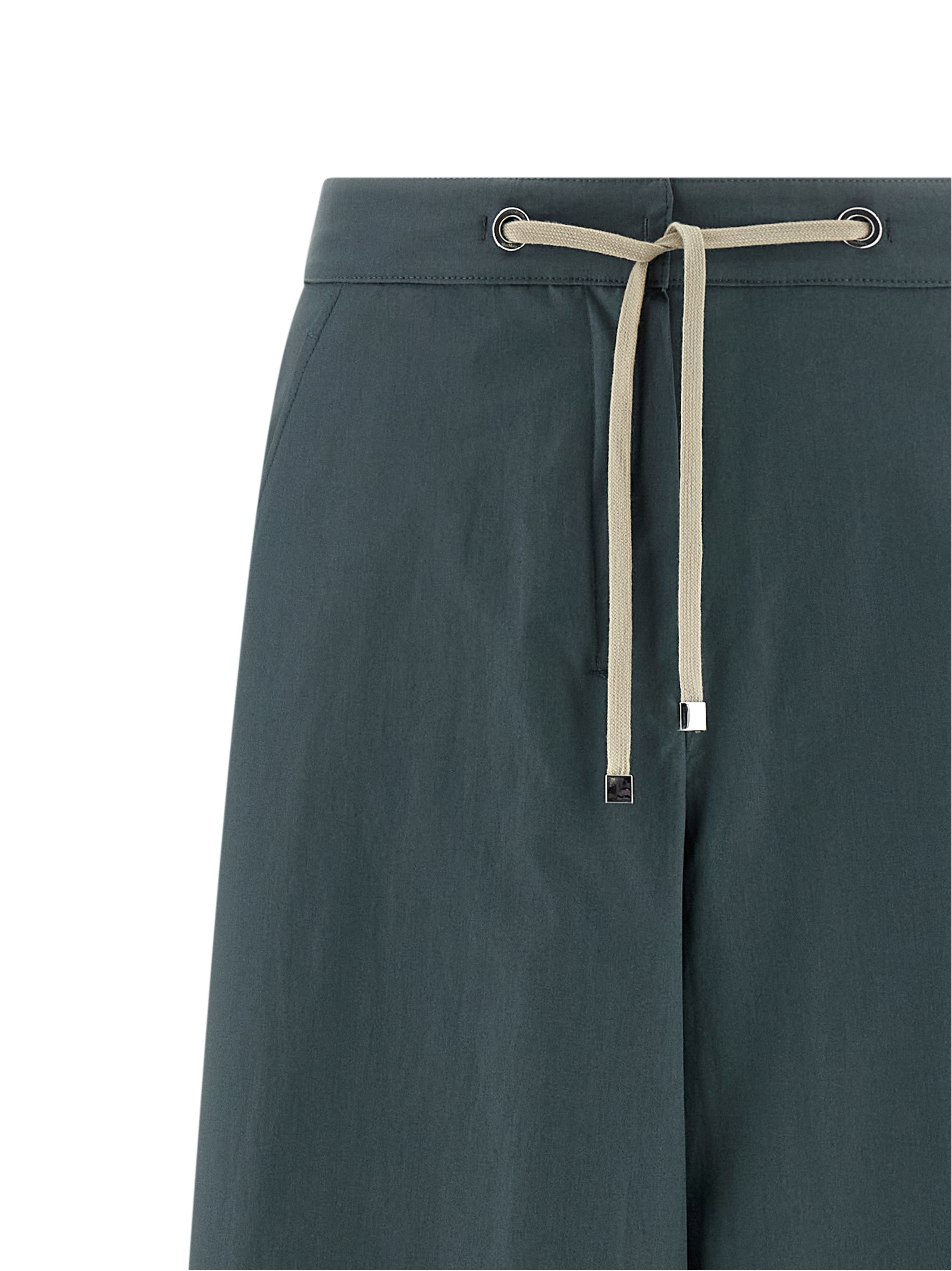 'SmmGufo' cotton poplin pants, extra wide flared leg, back elastic with drawstring at the waist, zip, hook and front button closure, pockets.