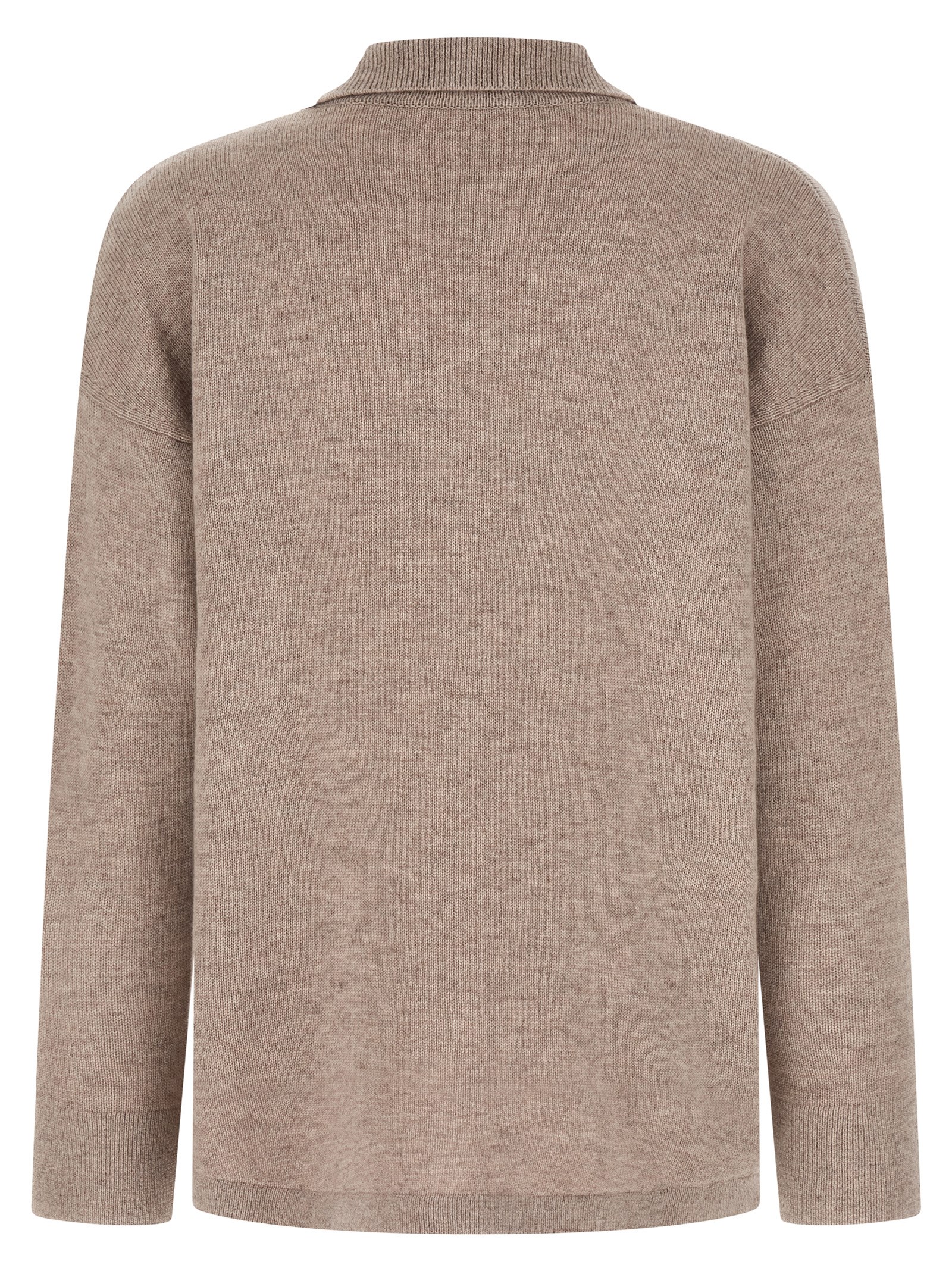 'SmmGatti' cardigan in solid-knit wool and cashmere yarn, slightly flared line, shirt collar, front button closure, long sleeves with dropped shoulders, rounded hem.