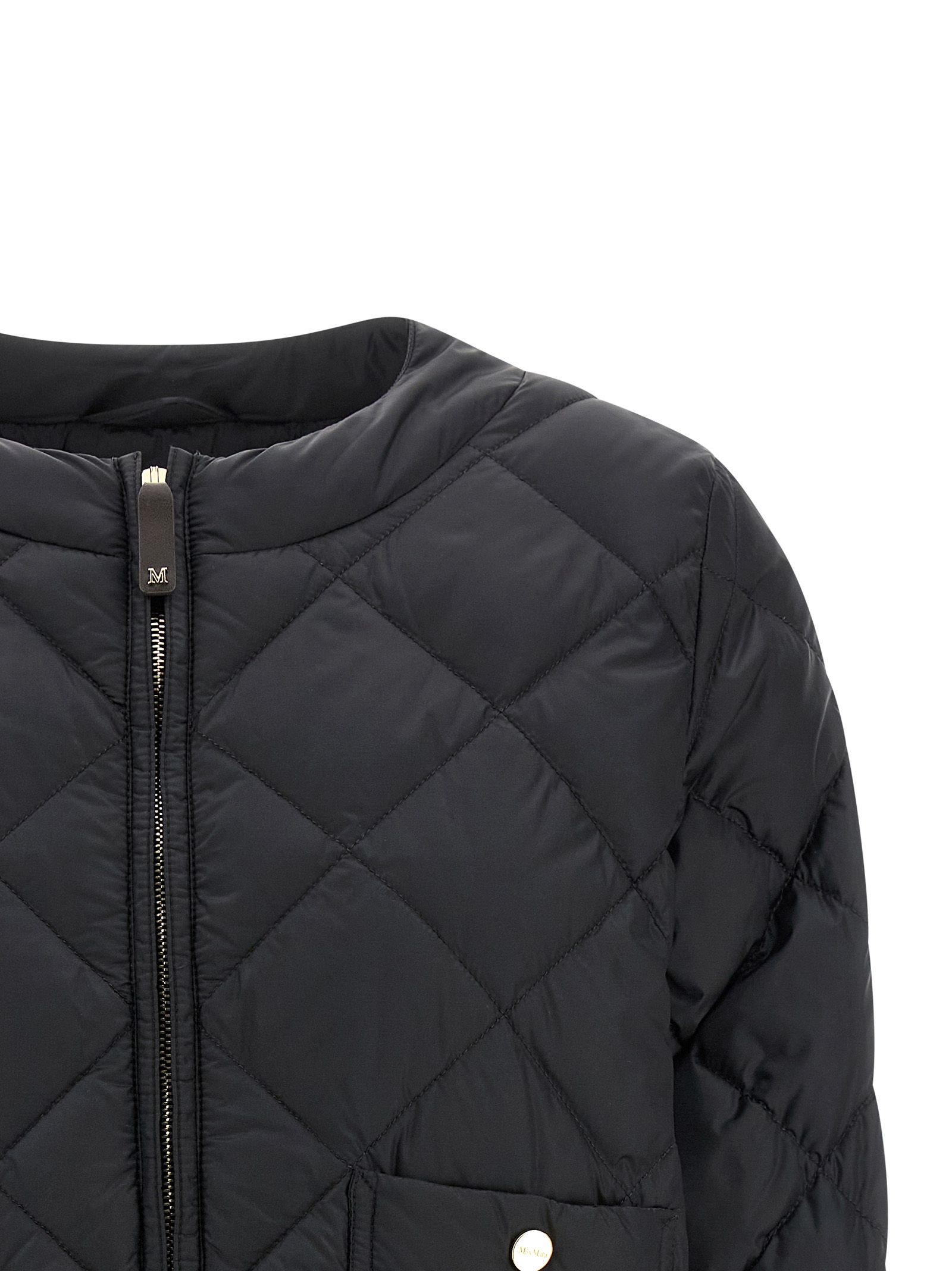 'MtcSofta' jacket in iridescent anti-drip canvas quilted with diamonds and slightly padded with goose down, crew neck, front zip closure, pockets, 3/4 sleeves with slit on the cuffs and snap buttons.