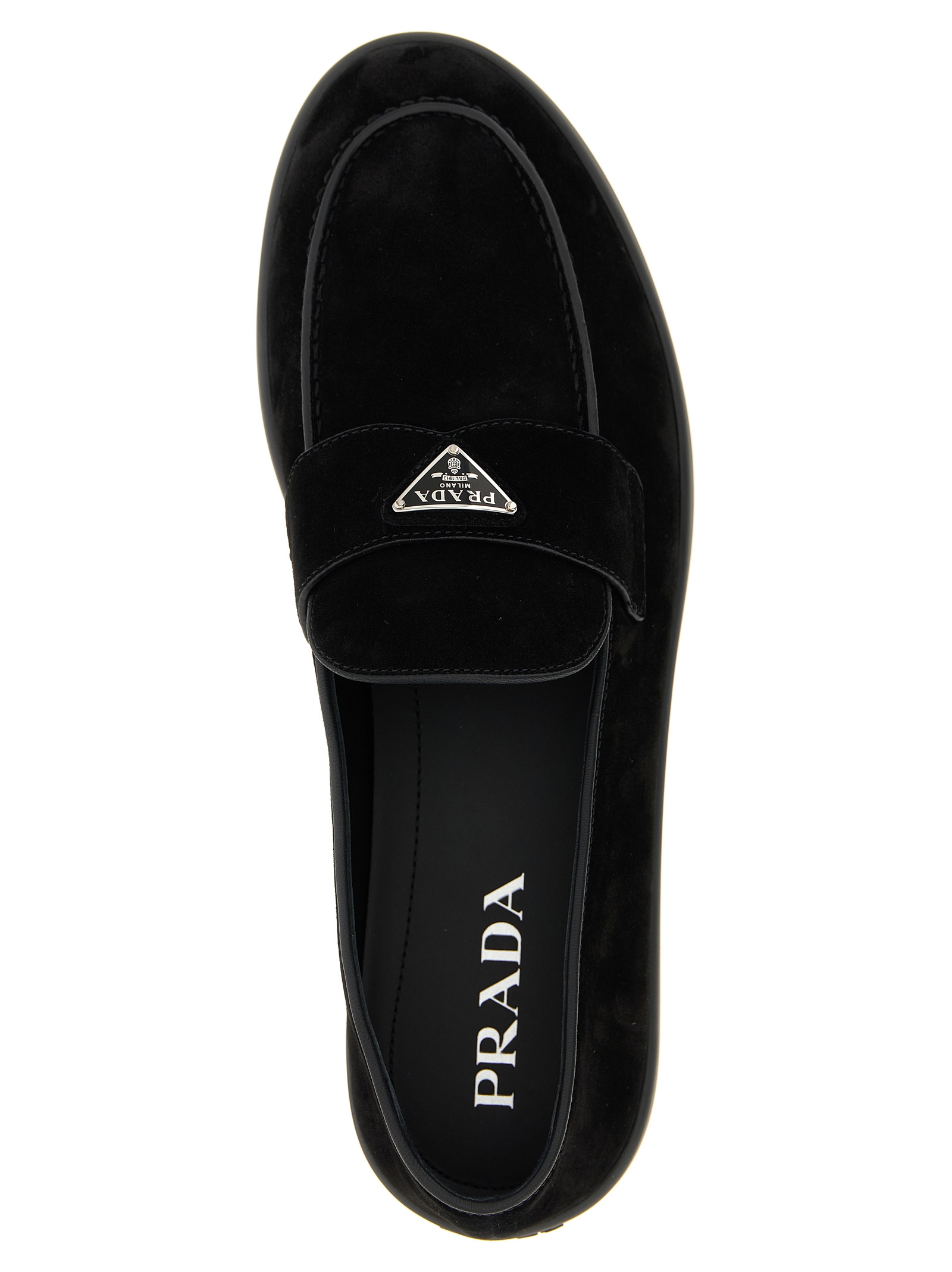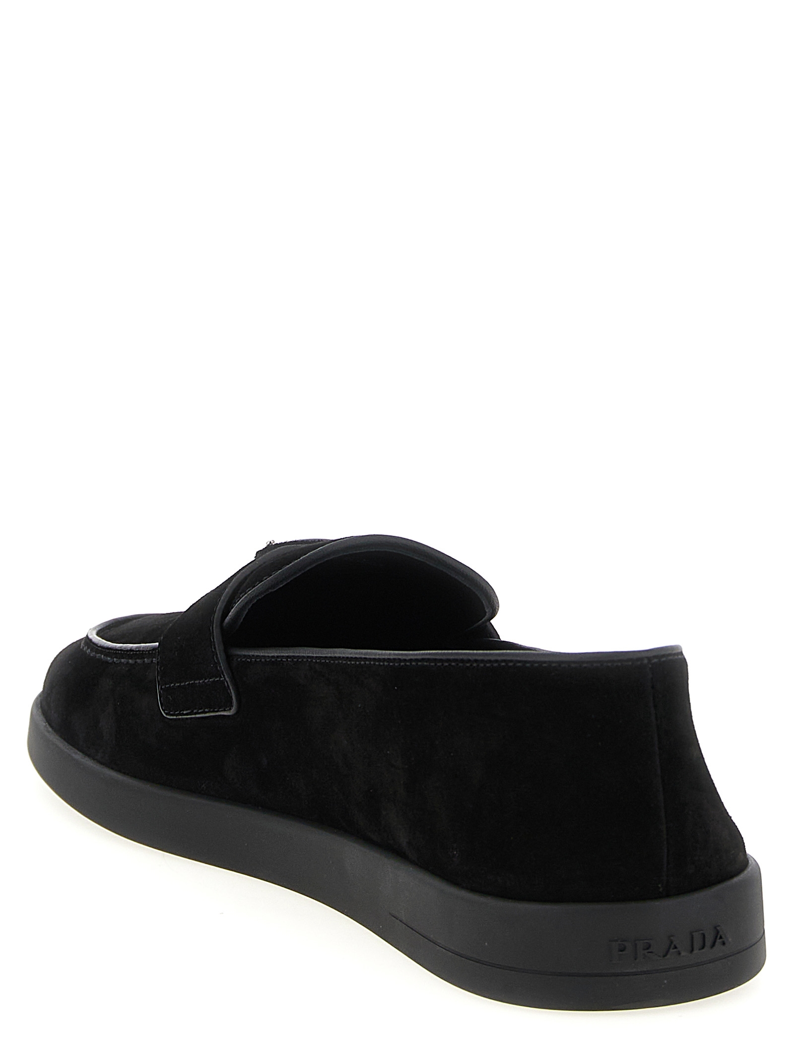 Suede loafers with front logo, leather details, rubber sole.