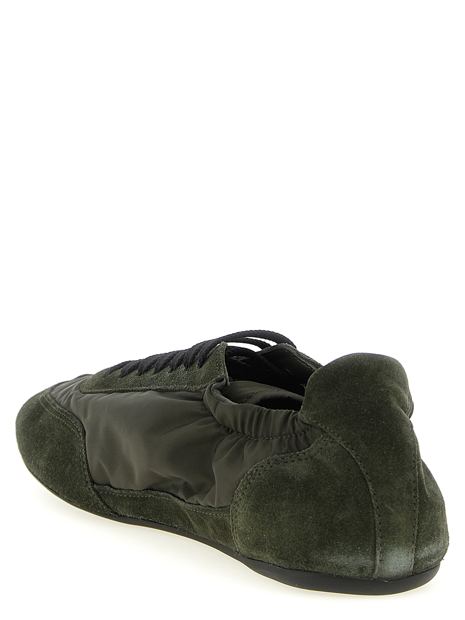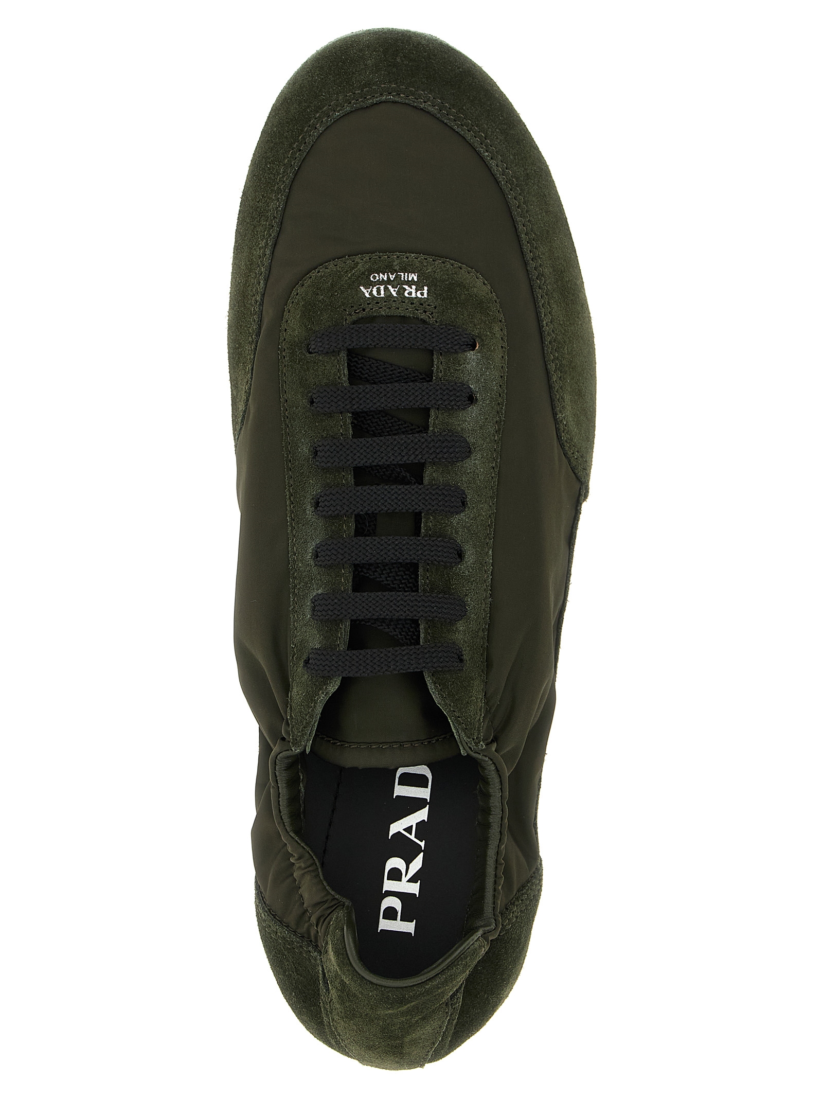 'Collapse' Re-Nylon and suede sneakers with vintage finish, front embossed logo, lace-up closure, rubber sole. SUSTAINABLE: This product is made with Re-Nylon, a regenerated yarn made from recycled and purified plastic collected in oceans, fishery nets and textile fibers.