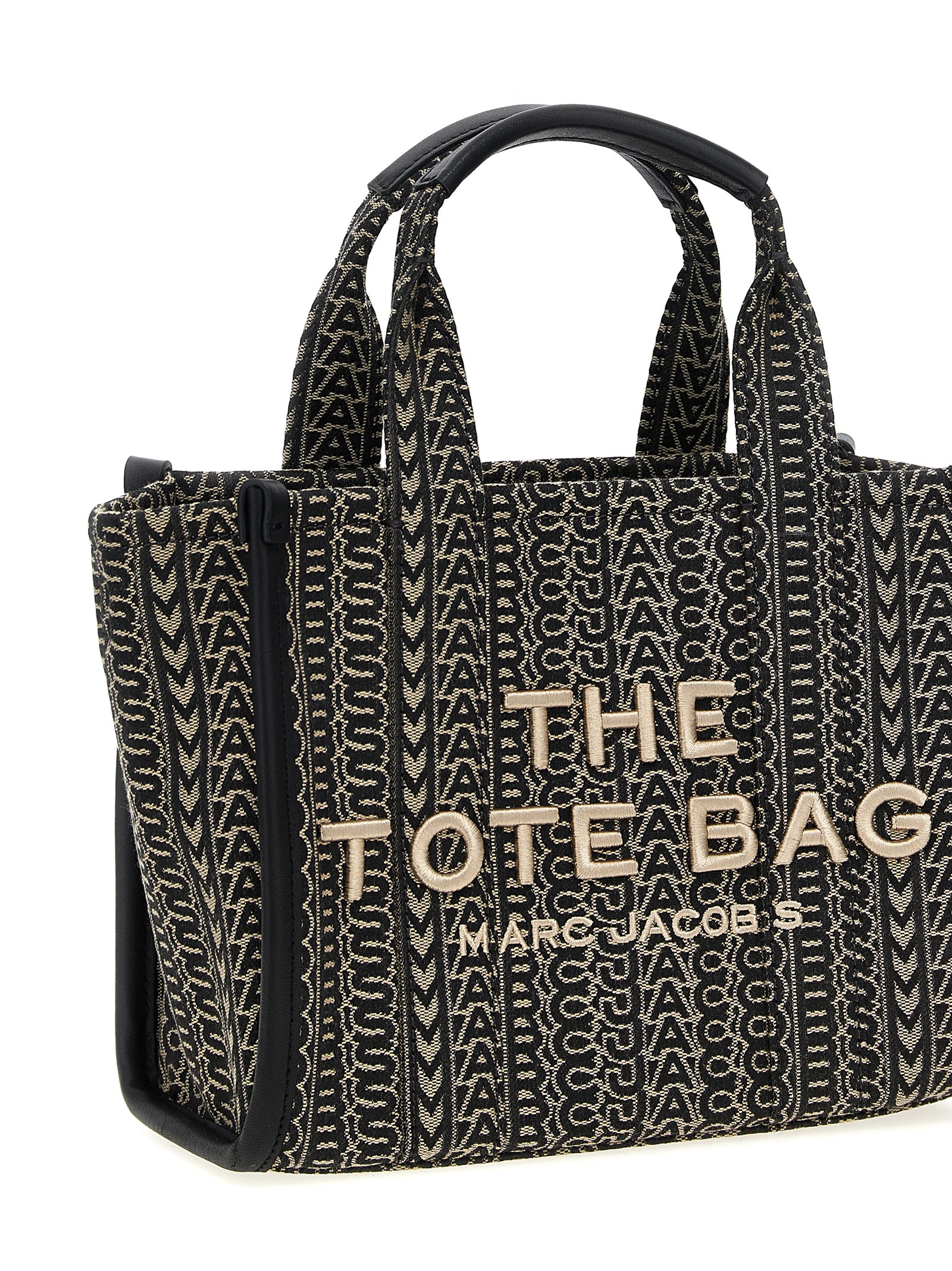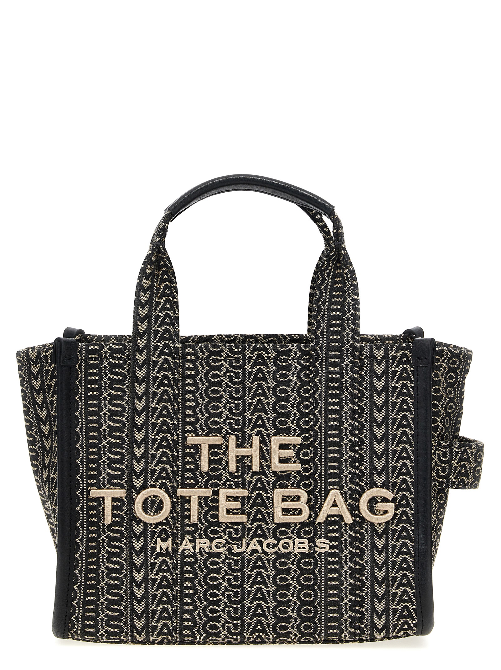 'The Monogram Jacquard Small Tote' handbag in woven jacquard fabric with all-over Monogramm logo, front logo embroidery, double fixed handle, zip closure, adjustable and removable shoulder strap.