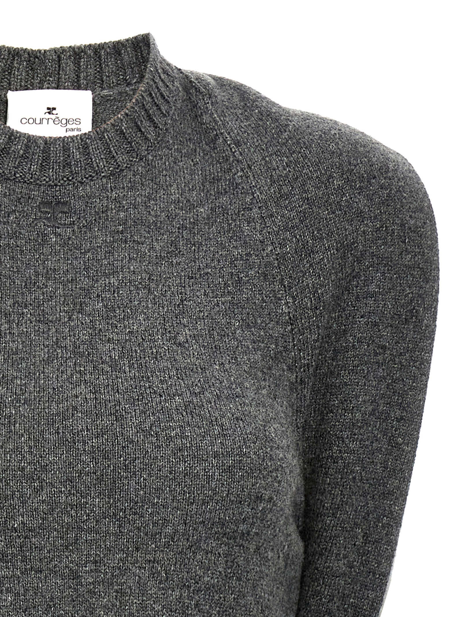 'Over The Shoulder Drapè' wool dress, crew neck, front logo, sleeveless and bare back.