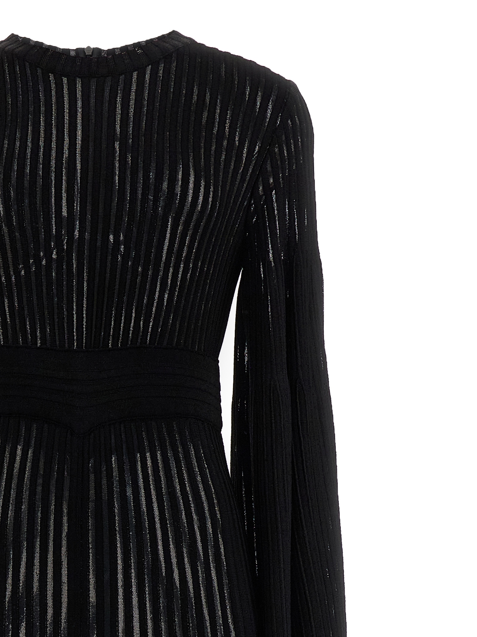 Desire' ribbed stretch viscose knit crew neck, long sleeves, very loose leg and a back zip closure.