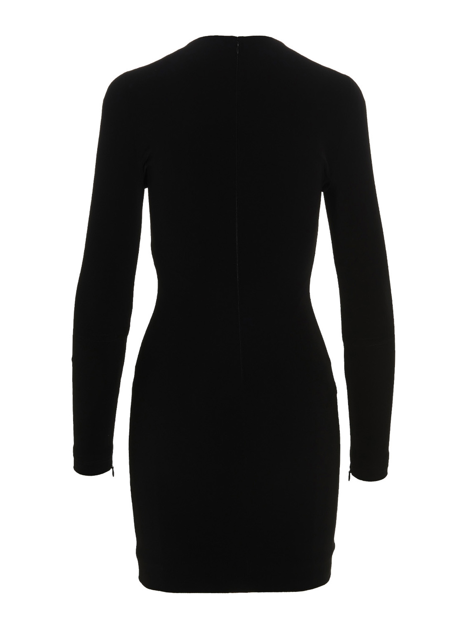 Stretch ruched twill mini dress, long-sleeved crew neck model with silicone band in the hem..