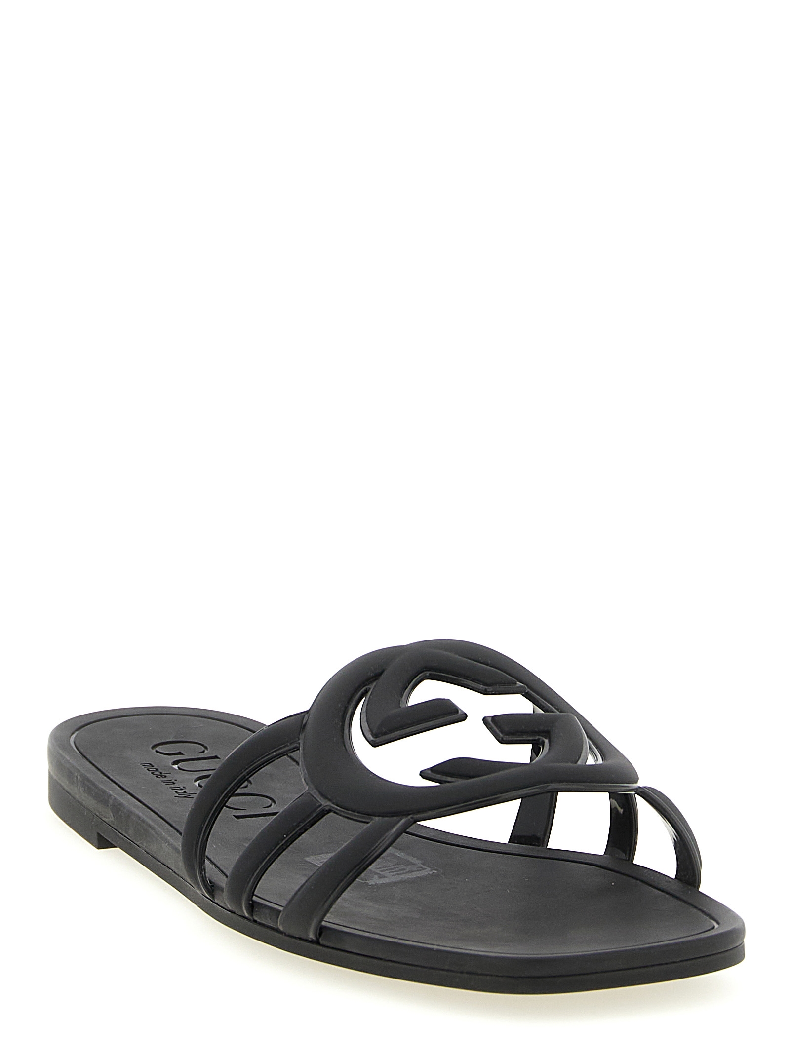 Sandals - 'Gucci Lido' line in rubber, band with 'Incrocio GG' cut-out.