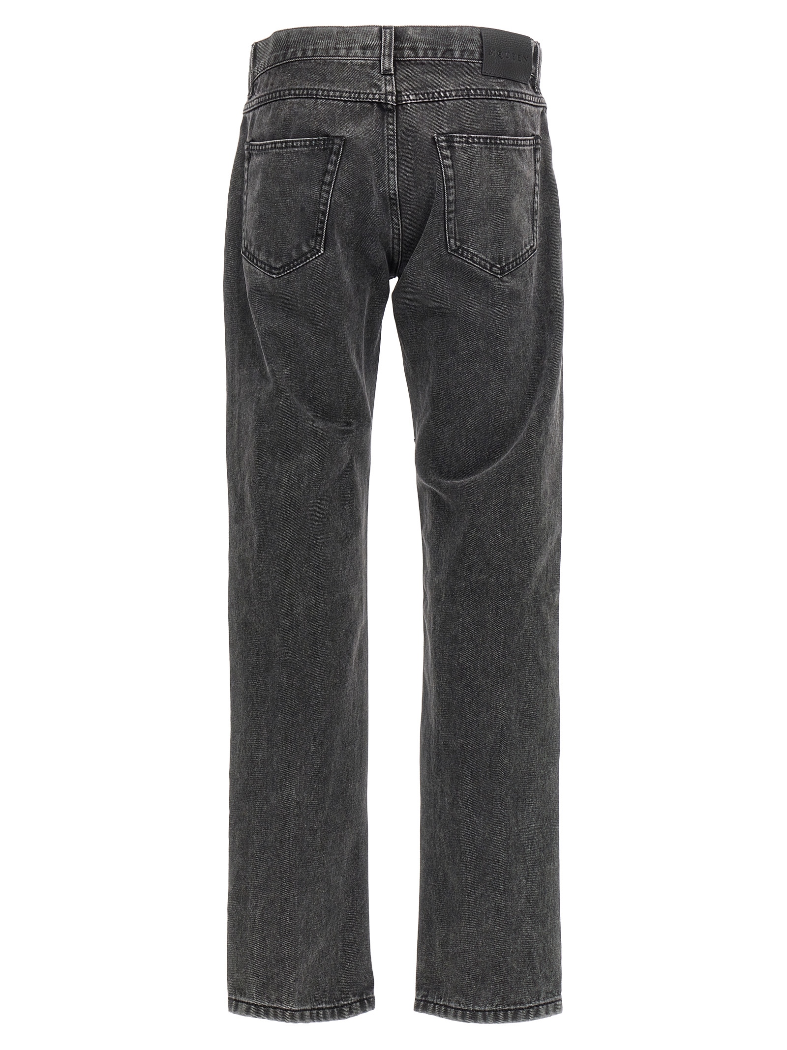 Cotton denim jeans with button closure, five pockets, leather logo tag, metal plaque on the belt loop.