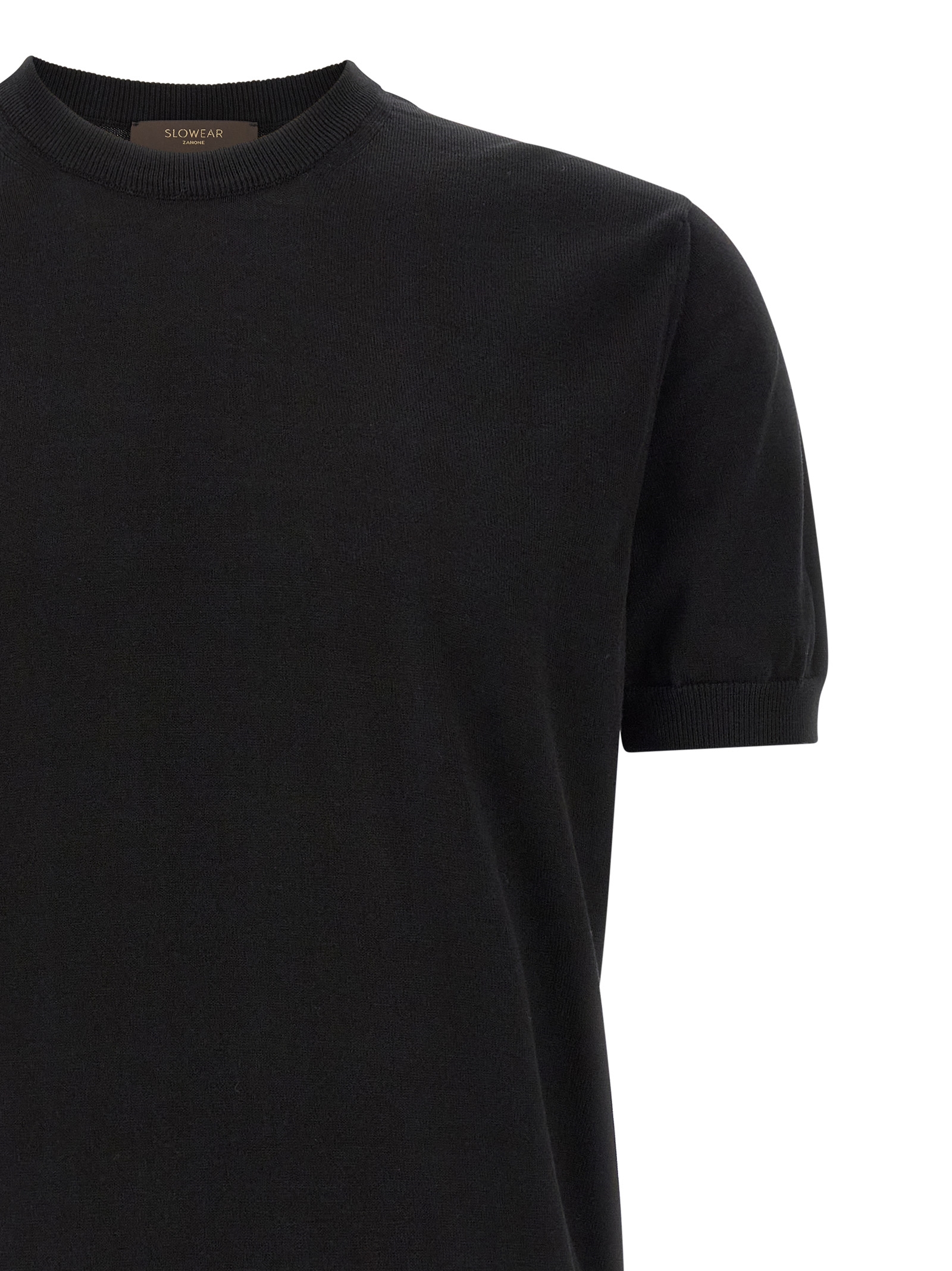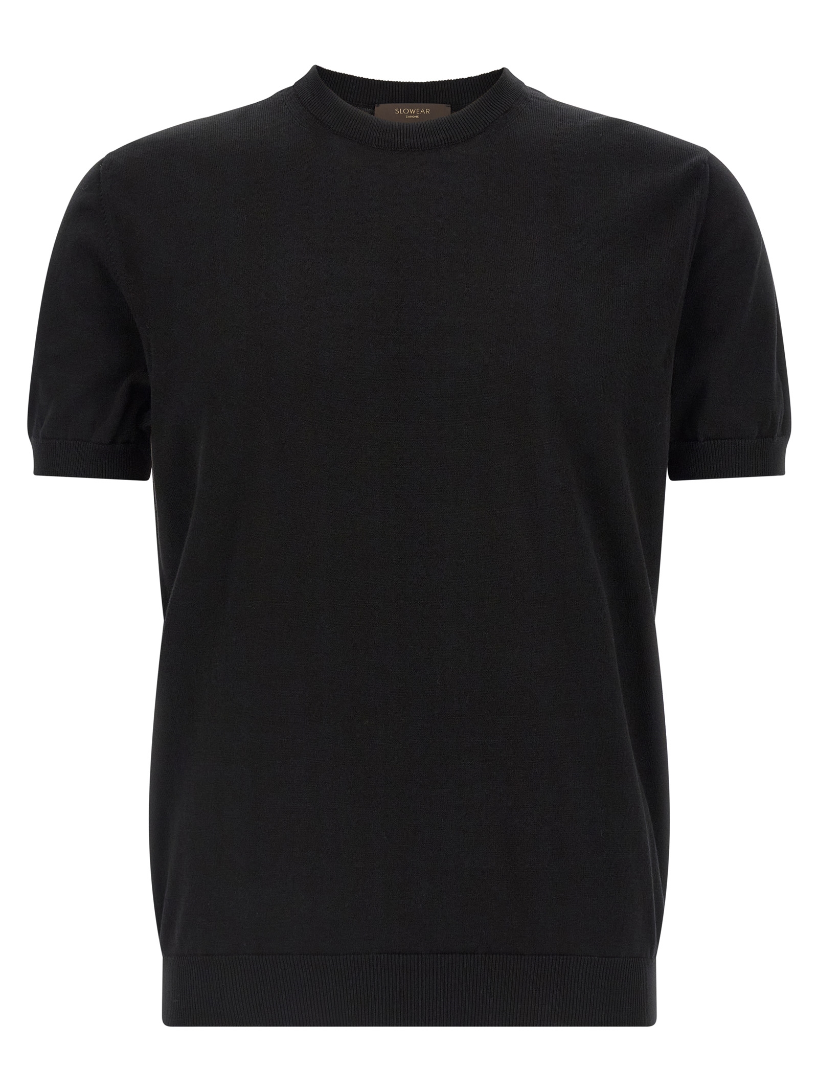 Cotton sweater, crew neck, short sleeves with cuffs, band on the hem.