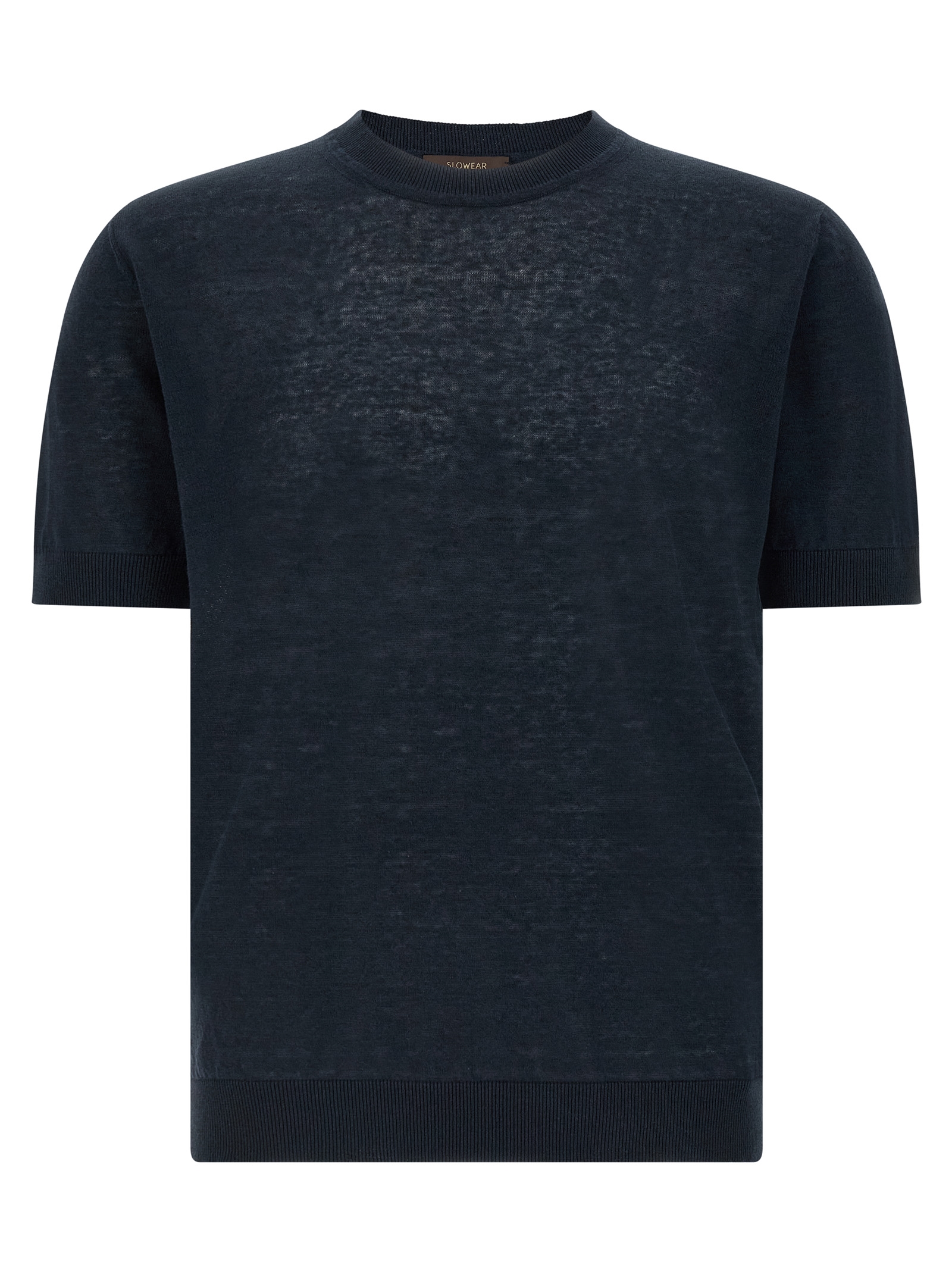 Linen and cotton blend 'Ice Lino' sweater, with crewneck, short cuffed sleeves, and headband on the hem.