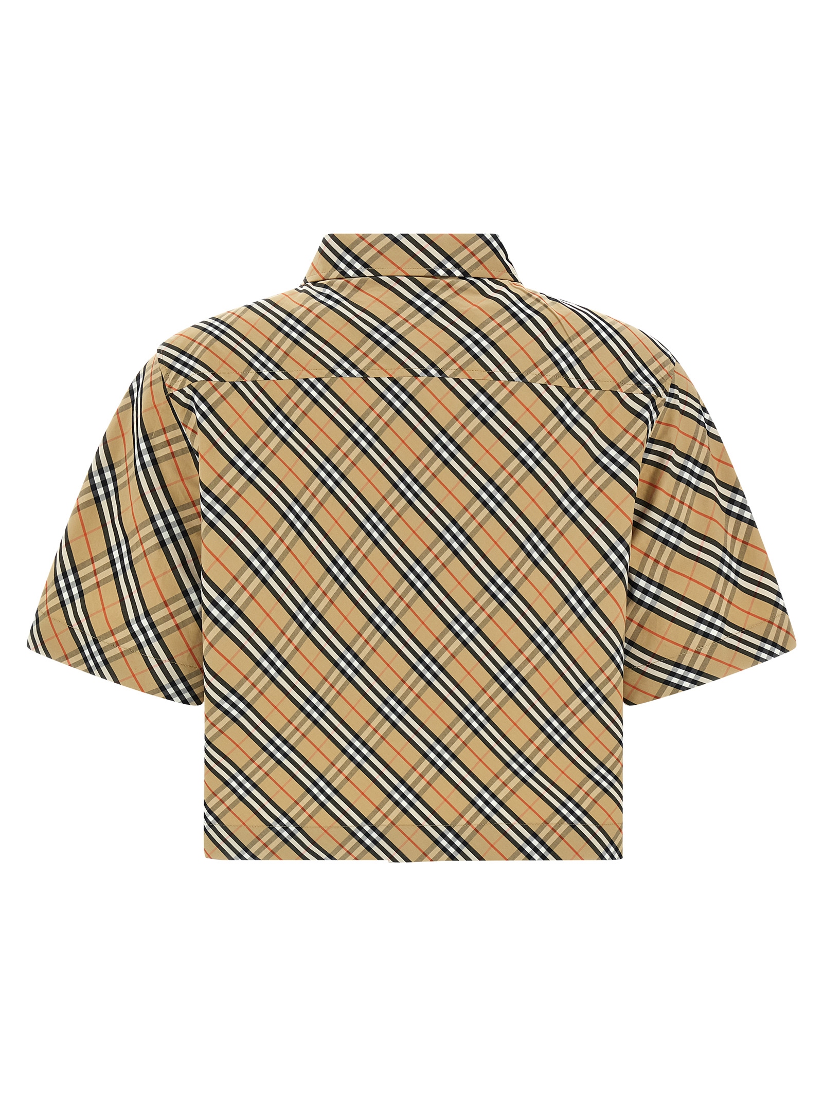 Cotton shirt with Burberry Check print, crop model, pocket with 'B Shield' embroidery, button closure, short sleeves.