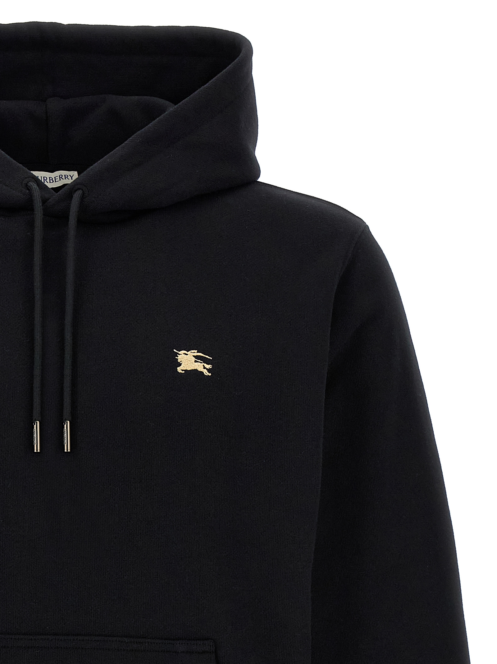 'Simon' hoodie in brushed cotton with front logo embroidery, silk-screened Knight Stamp with embossed texture effect on the back, kangaroo pocket, long cuffed sleeves.