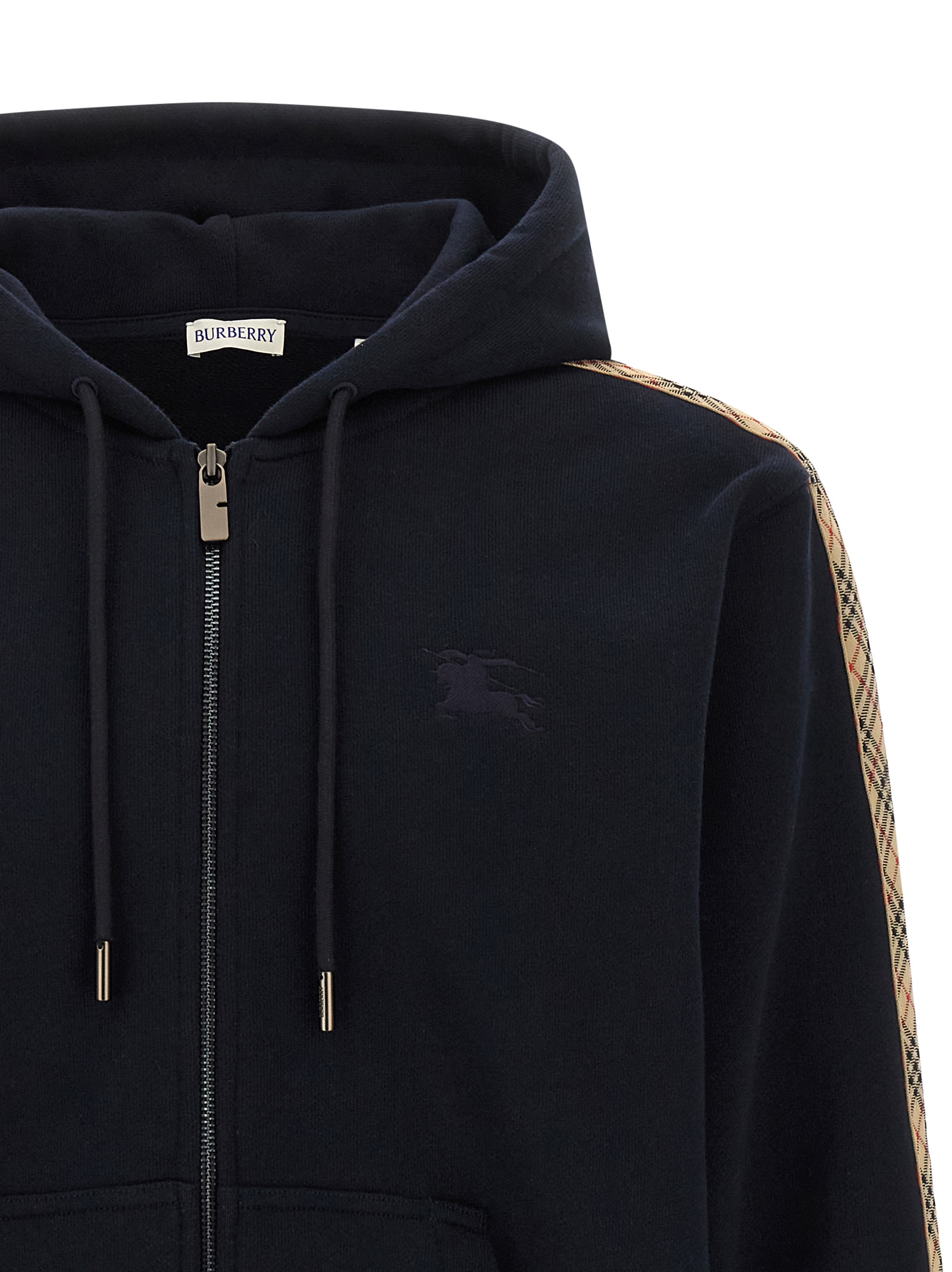 'Scott' lightweight cotton terry hoodie with tone-on-tone 'Equestrian Knight Design' logo embroidery and front zip closure, long cuffed sleeves and Burberry Check grosgrain tape detail.