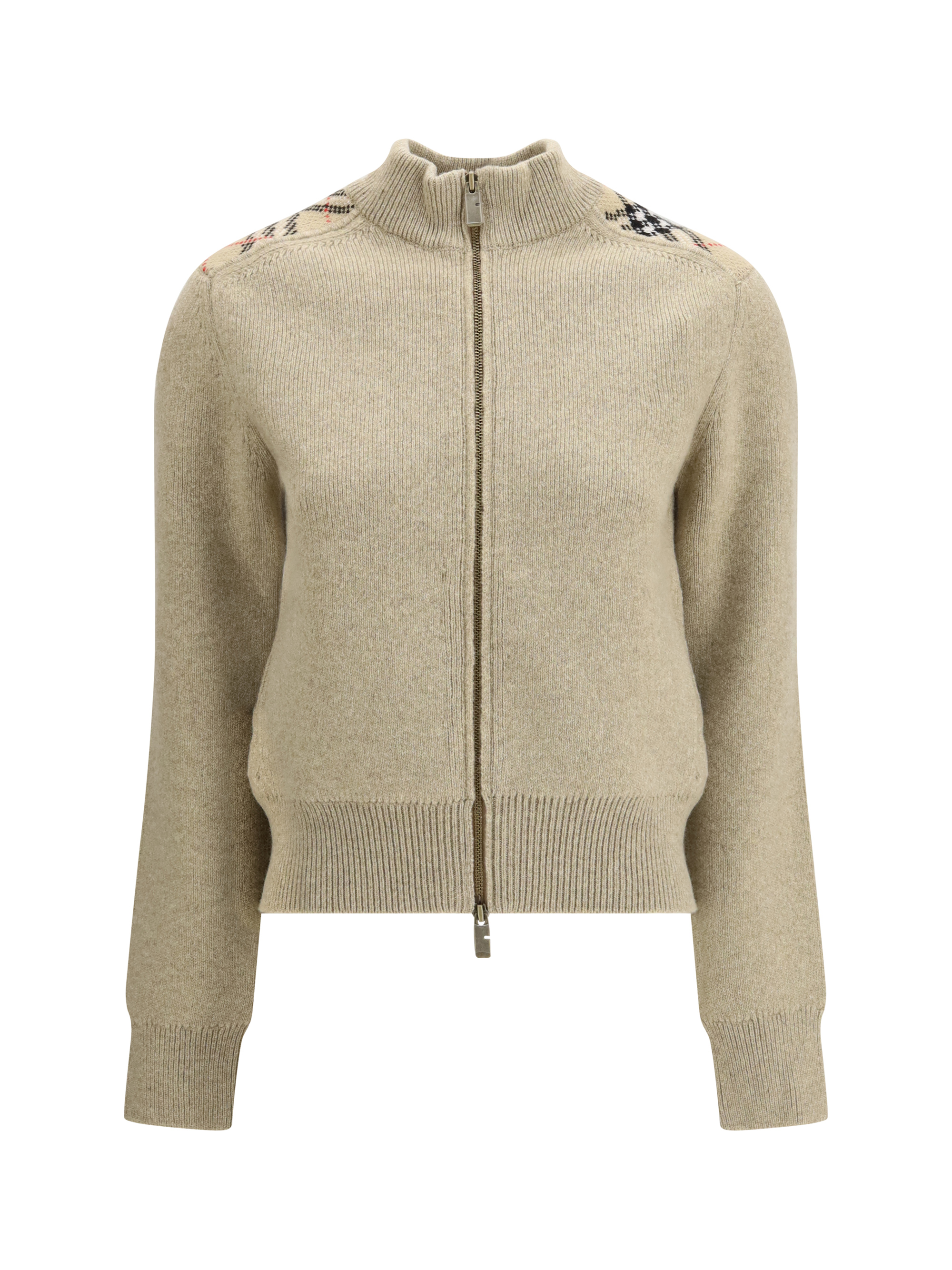 Cardigan in cashmere e lana con applicazioni Check