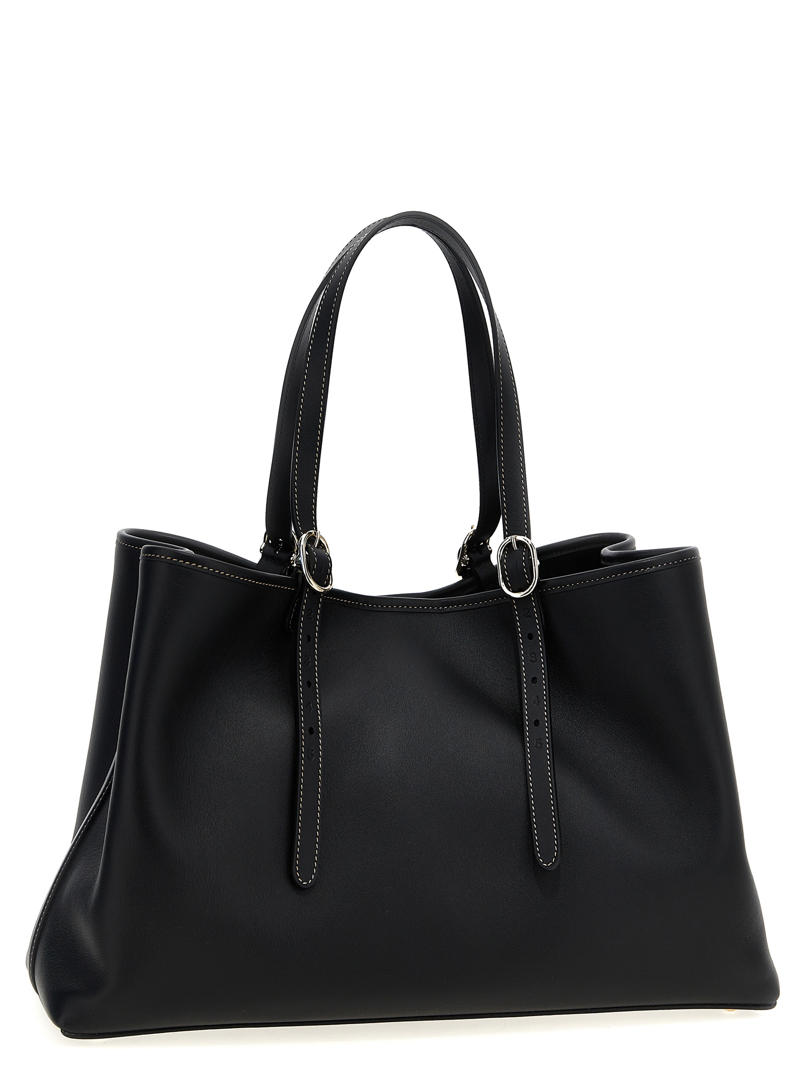 Medium leather 'GG Emblem' shopping bag with magnetic closure, double adjustable handle, metal details, front embossed logo.