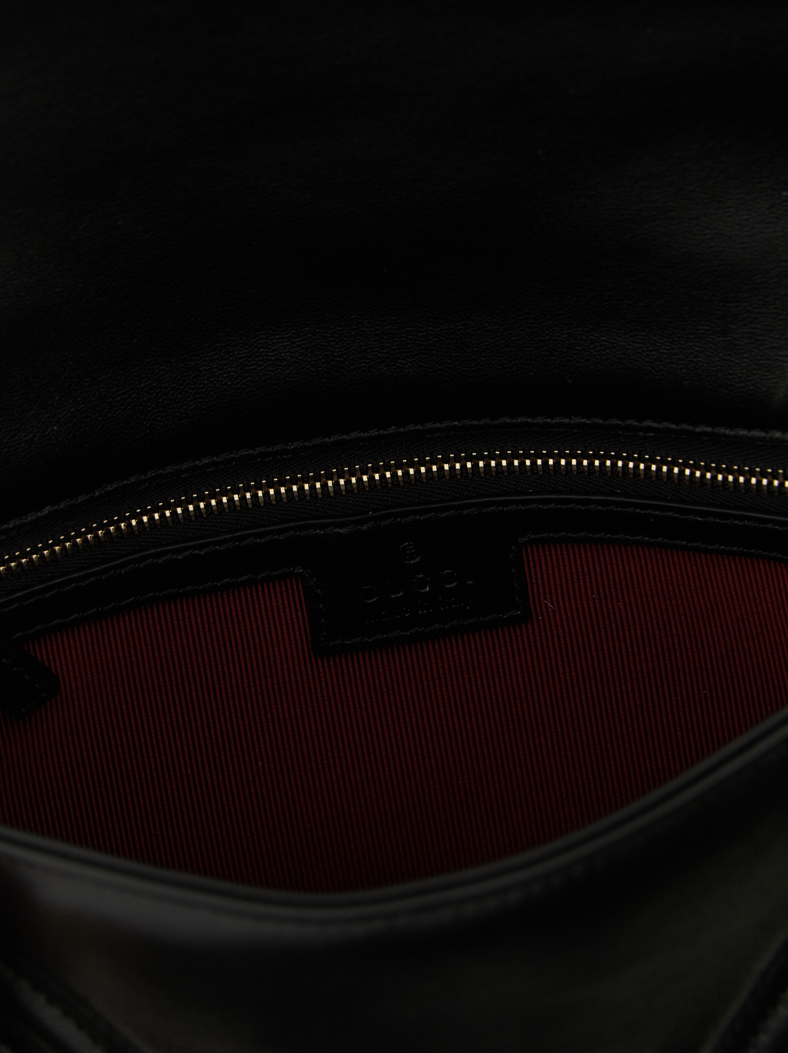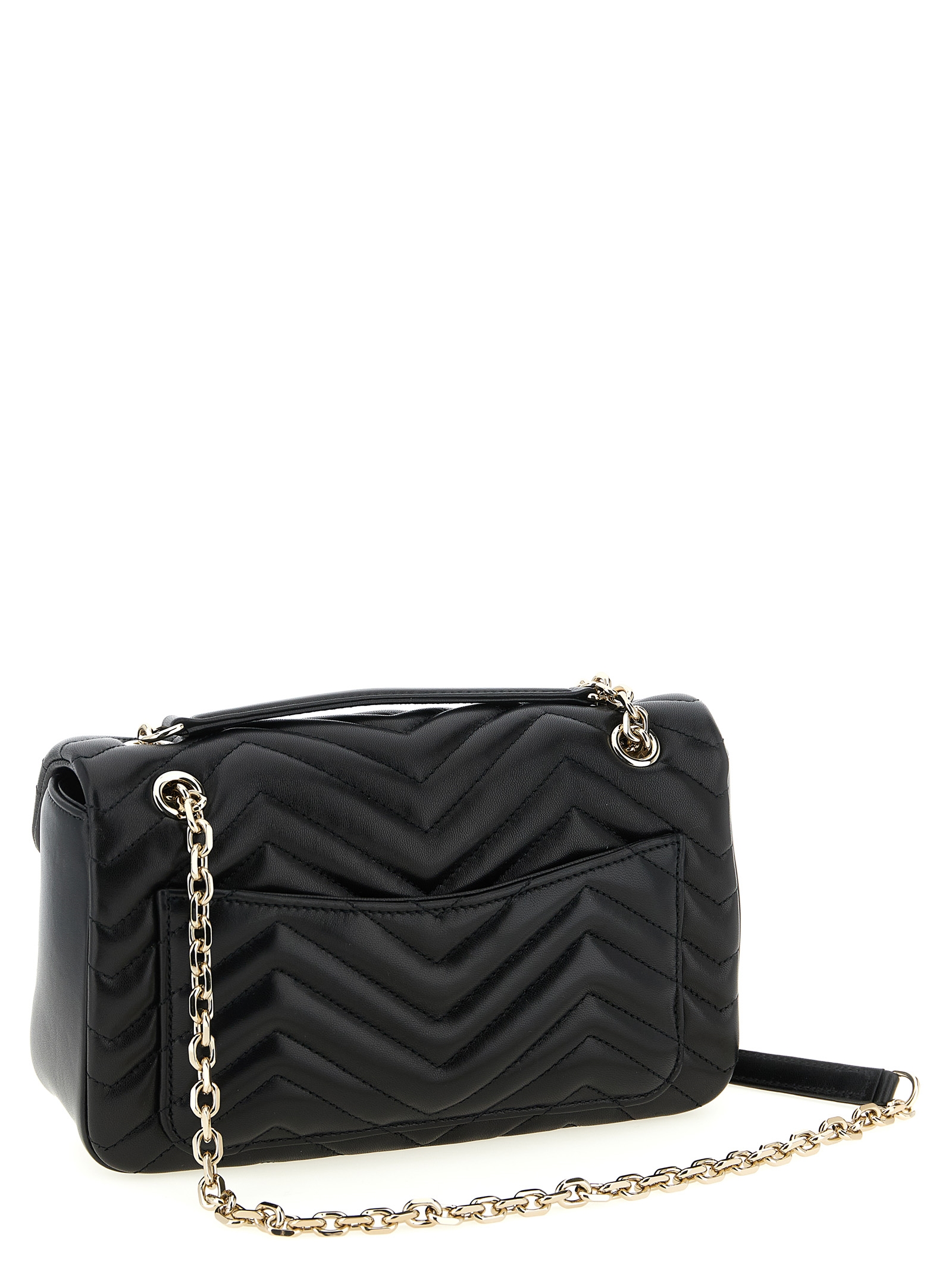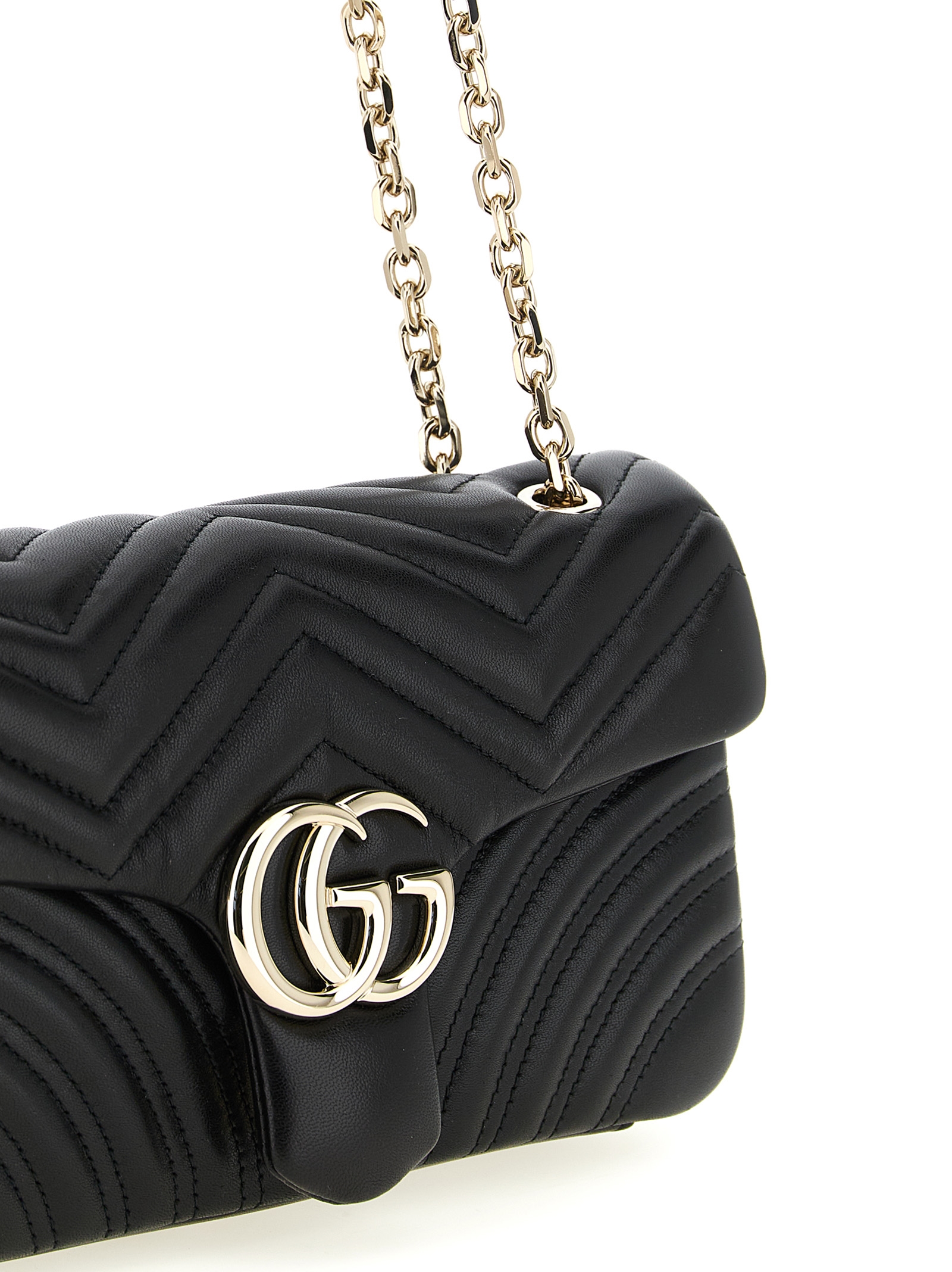 'GG Marmont' shoulder bag in chevron matelassé lambskin with 'Gucci Rosso Ancora' viscose lining, snap flap closure with front metal 'Doppia G' detail, sliding chain shoulder strap with leather shoulder protection.