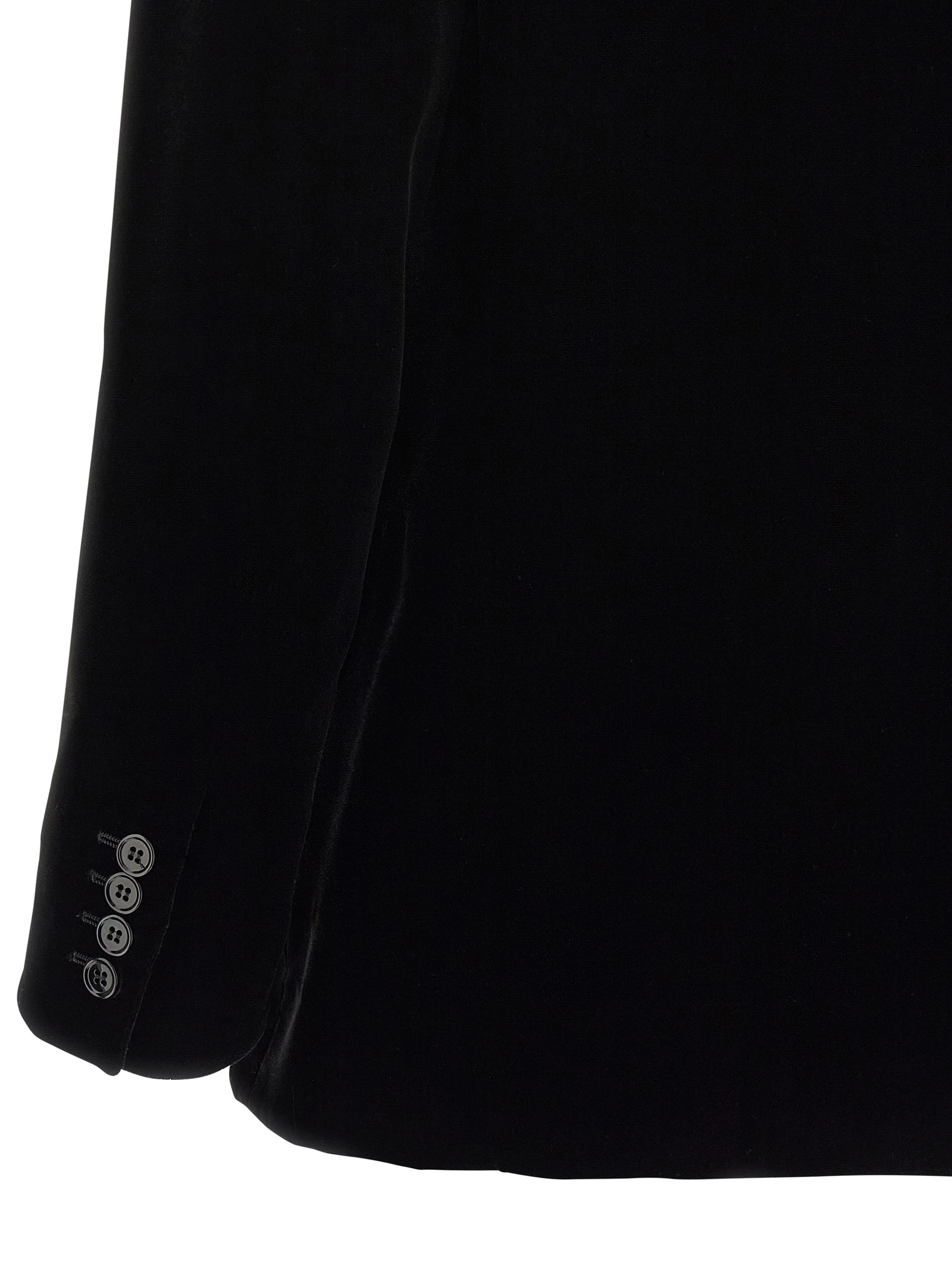 Double-breasted viscose velvet and cupro blazer with front button closure, peak lapels, chest pocket, flap pockets, inside pocket with tone-on-tone 'Cassandre' embroidery, padded shoulder, long sleeves, back split, and silk lining.