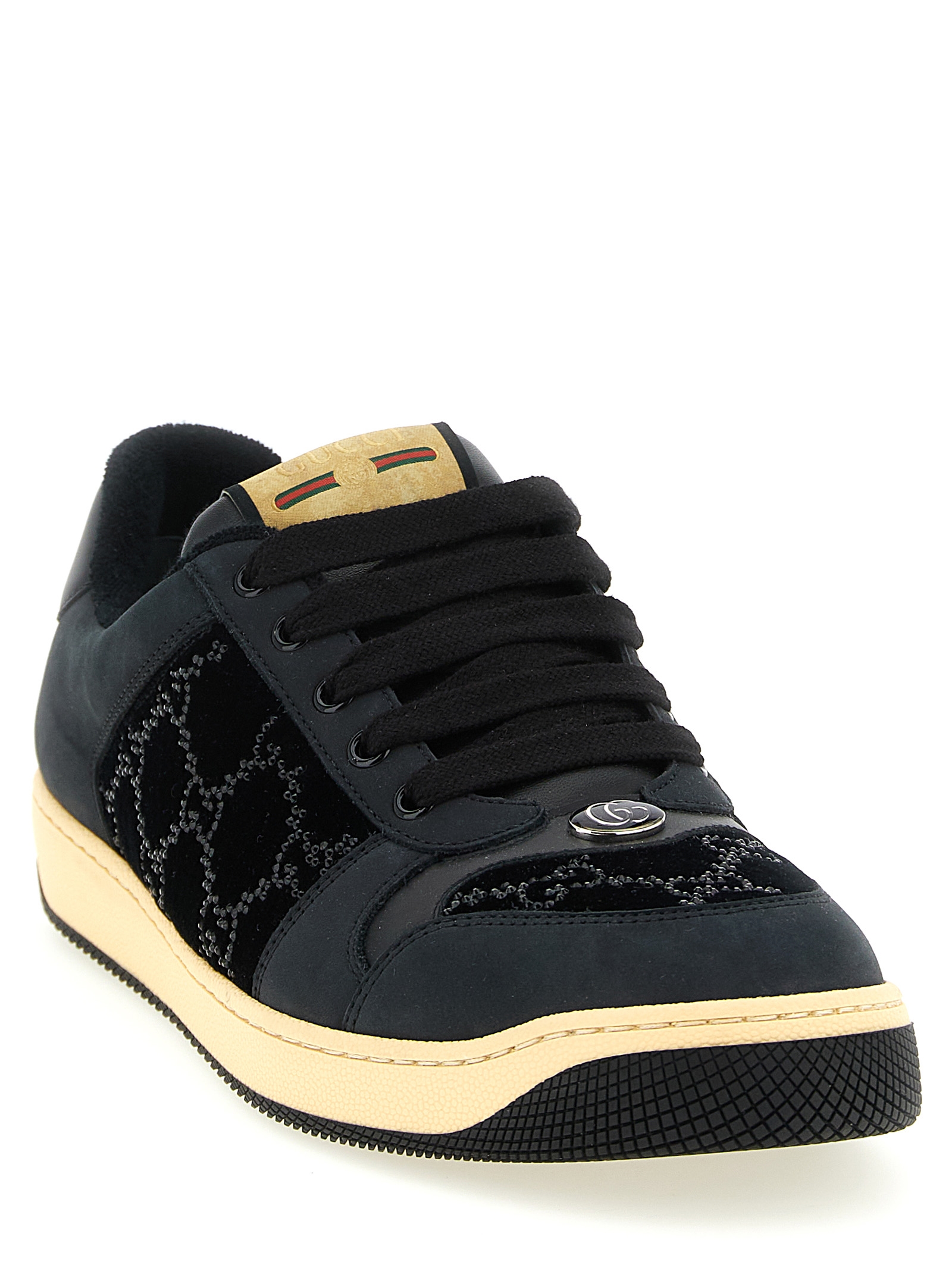 'Screener' velvet sneakers with GG crystal and tone-on-tone leather appliqué, enamelled oval detail with Double G metal on the front, back embossed logo, lace-up closure, rubber sole.