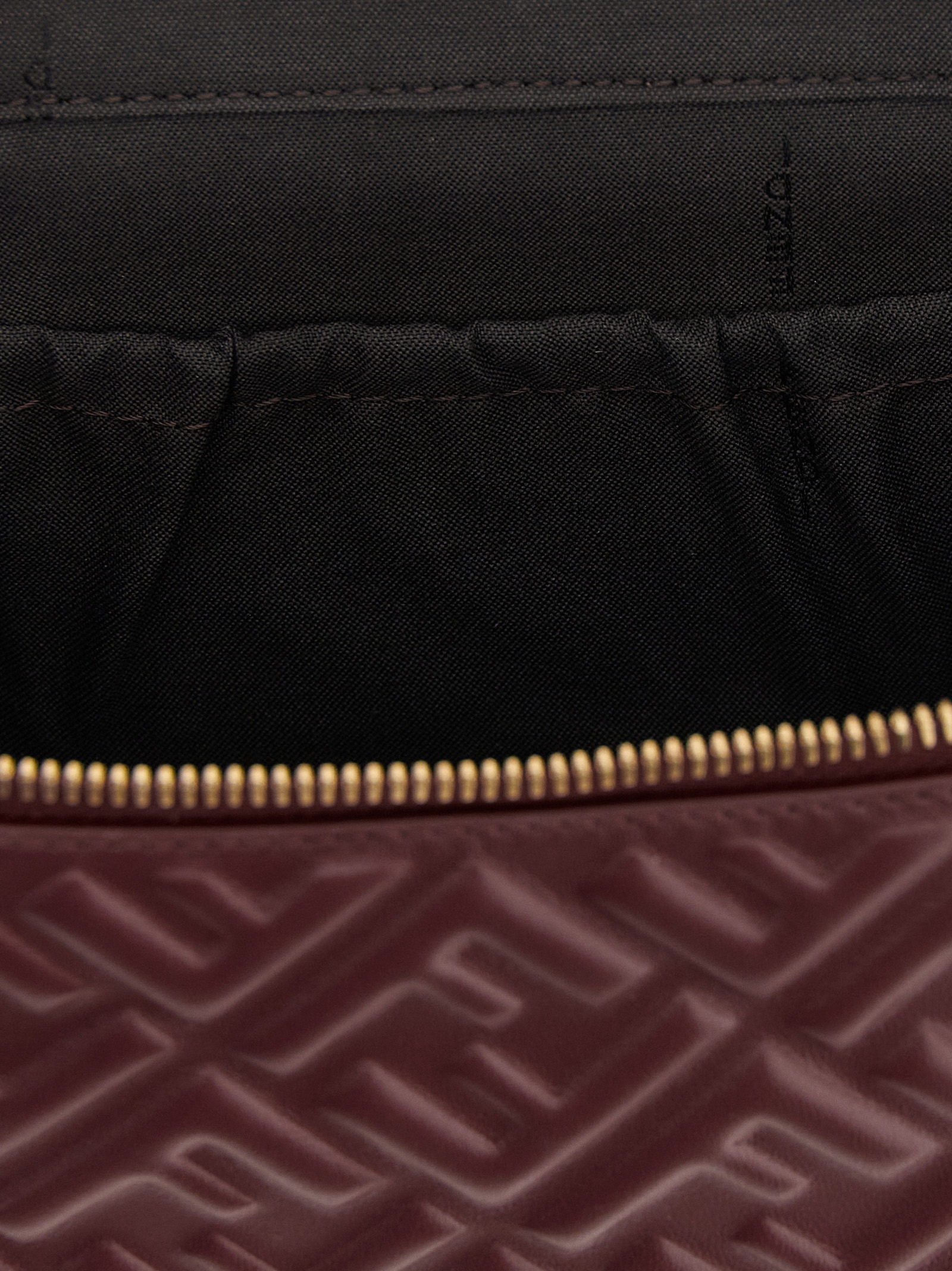 'Vanity' nappa crossbody bag with embossed 'FF' pattern, top case model, double slider zip closure with 'FF' metal details, fixed handle and removable leather and chain shoulder strap.