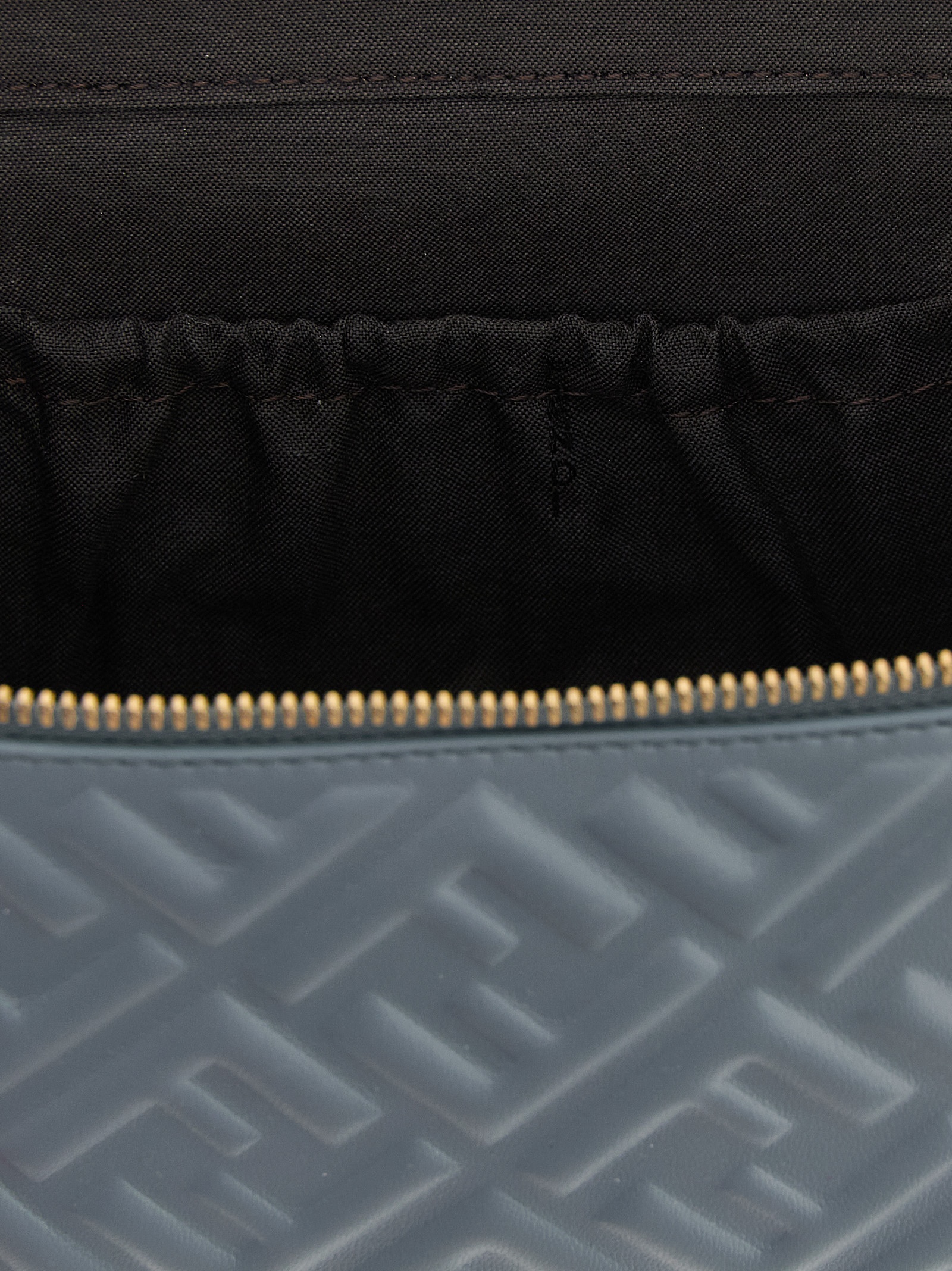 'Vanity' nappa crossbody bag with embossed 'FF' pattern, top case model, double slider zip closure with 'FF' metal details, fixed handle and removable leather and chain shoulder strap.