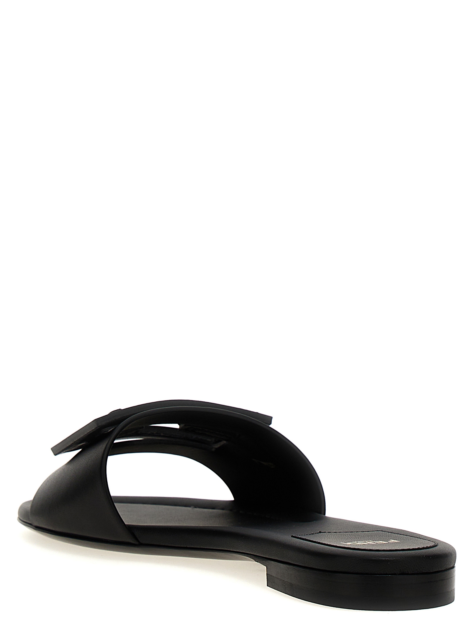 Baguette' leather sandals with FF front logo, flat model with leather sole.