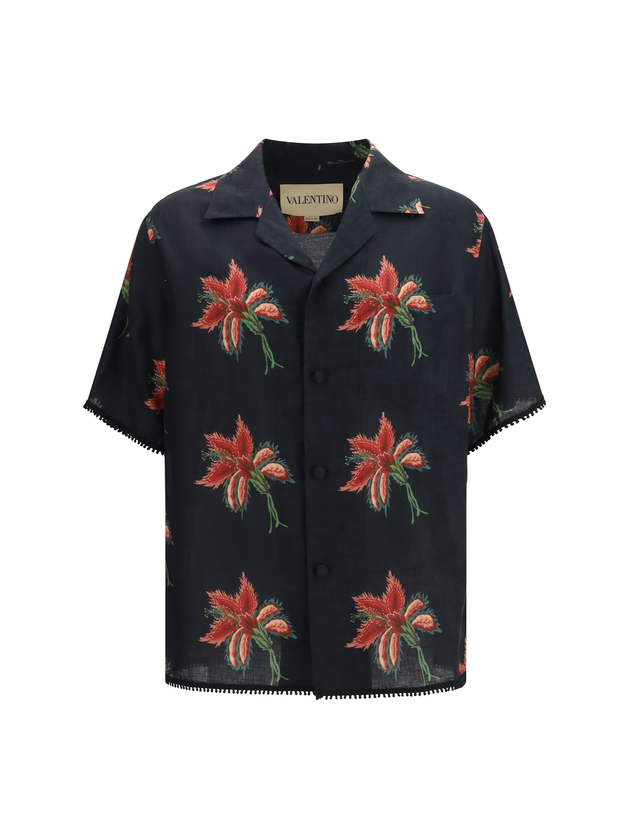 Camicia bowling in lino stampa Papier Floral
