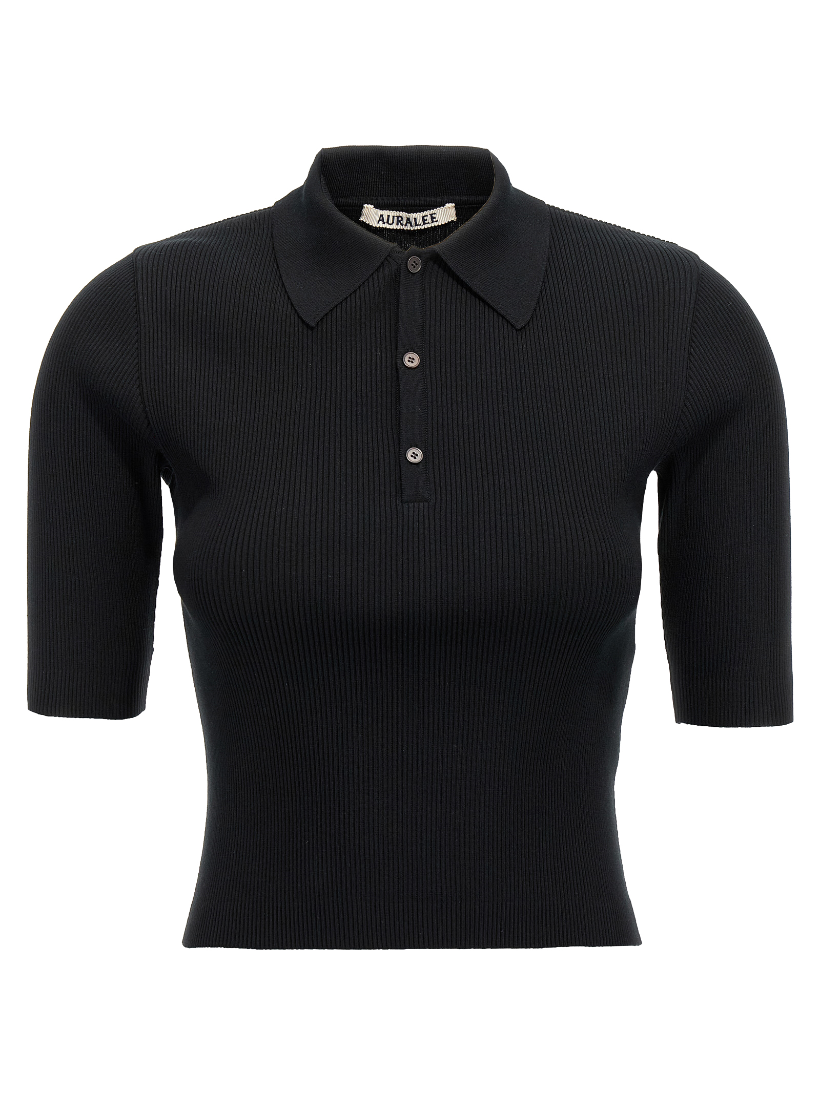 Giza extra long bow Egyptian cotton knit polo shirt with collar and buttons, short sleeves.