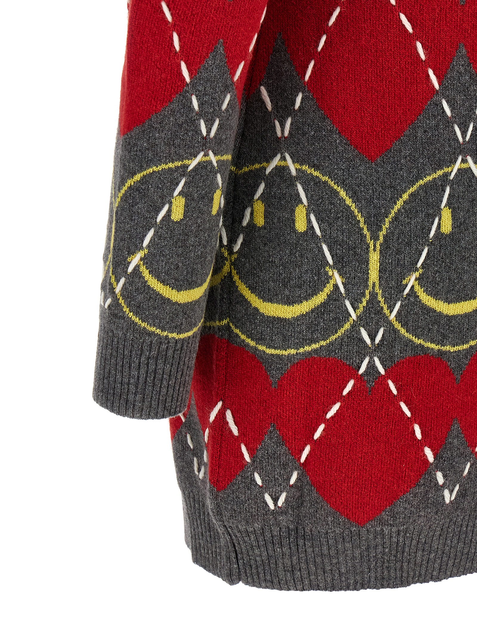Wool blend mini dress with heart and 'Smiley®' inlays and diamond-stitched pattern, crew neck, long cuffed sleeves, and leather logo patch at the back.
