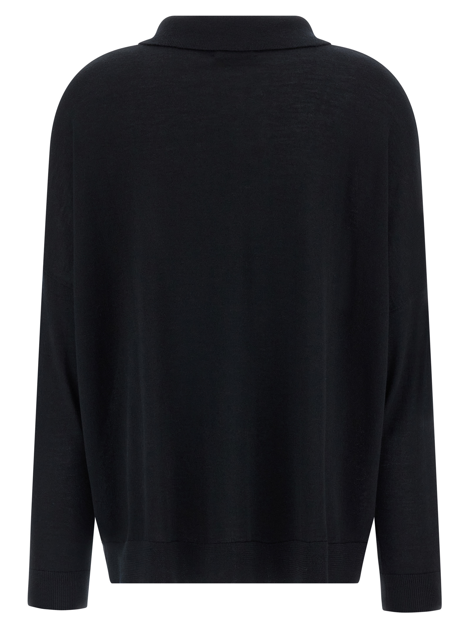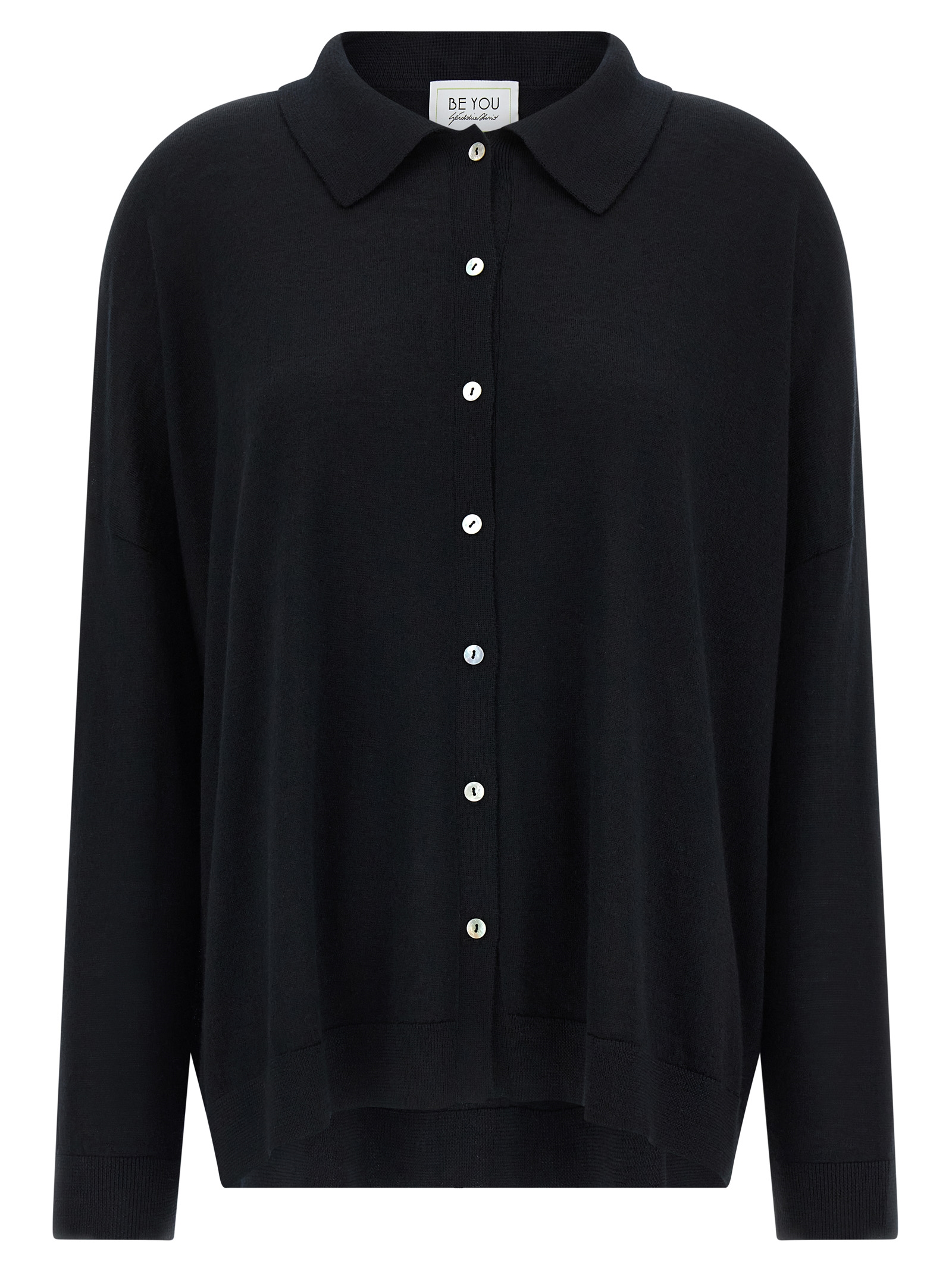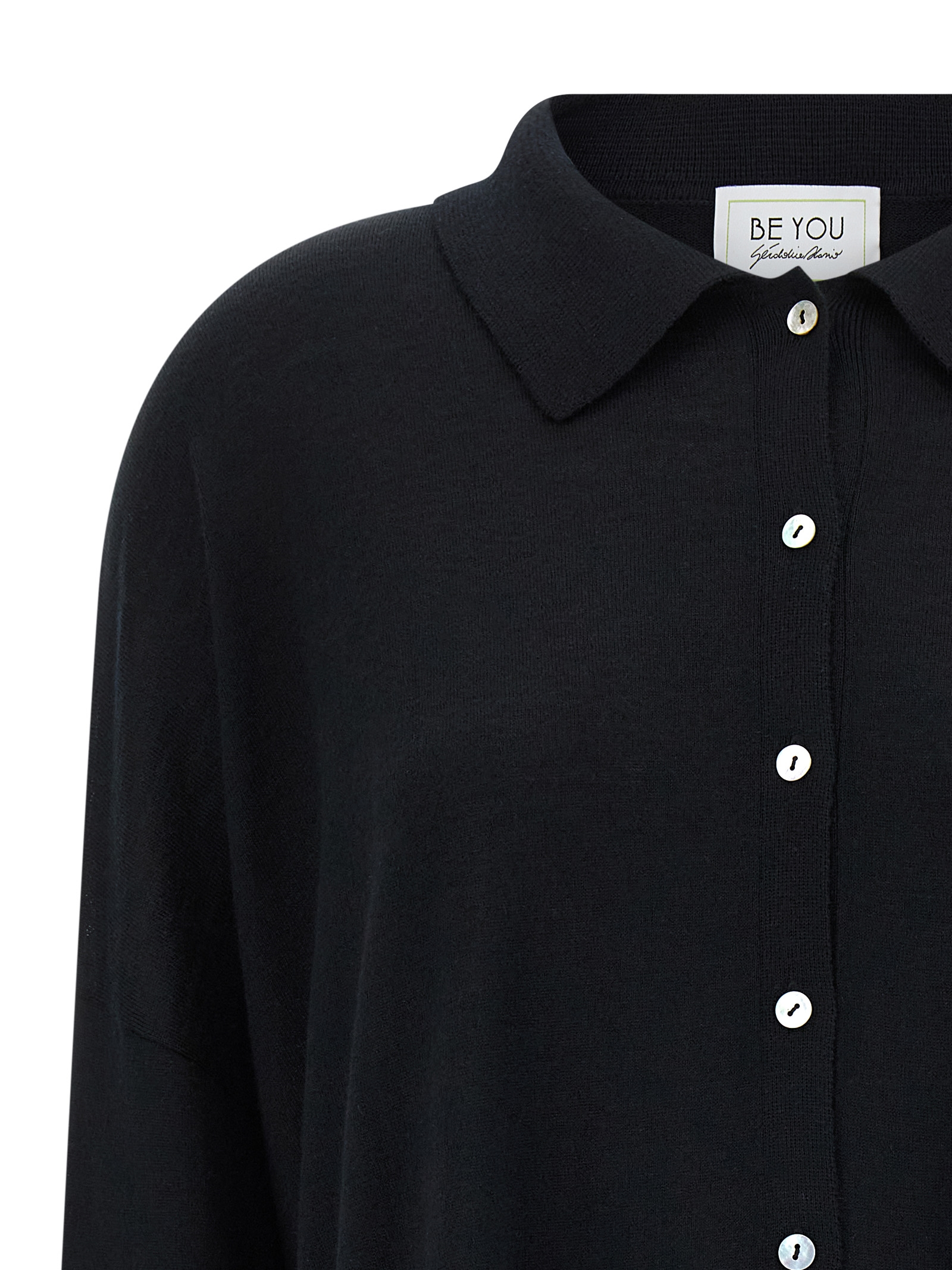 'Lady17' cashmere and silk blend cardigan with shirt collar, front mother-of-pearl button closure, long cuffed sleeves, side slits.