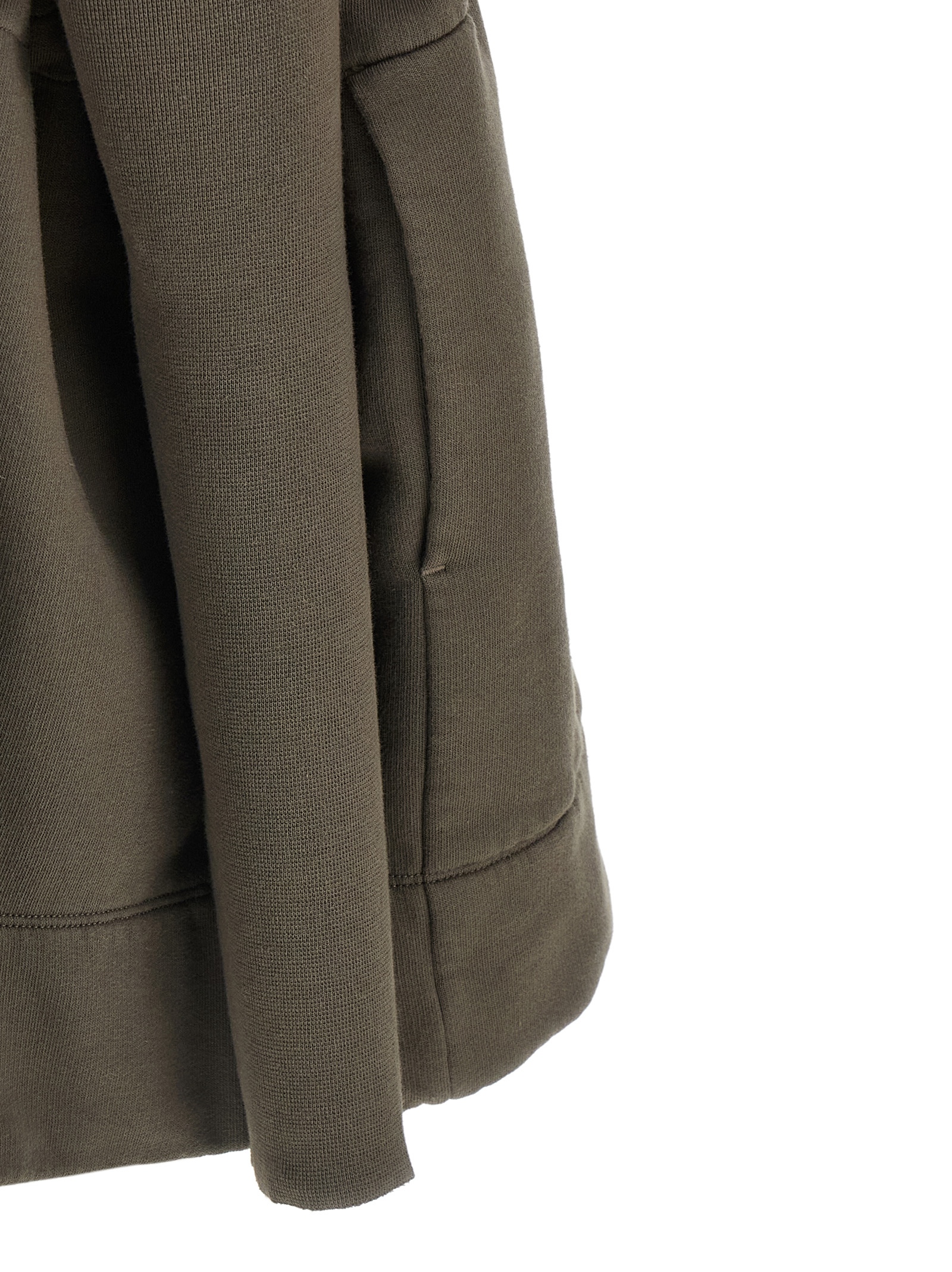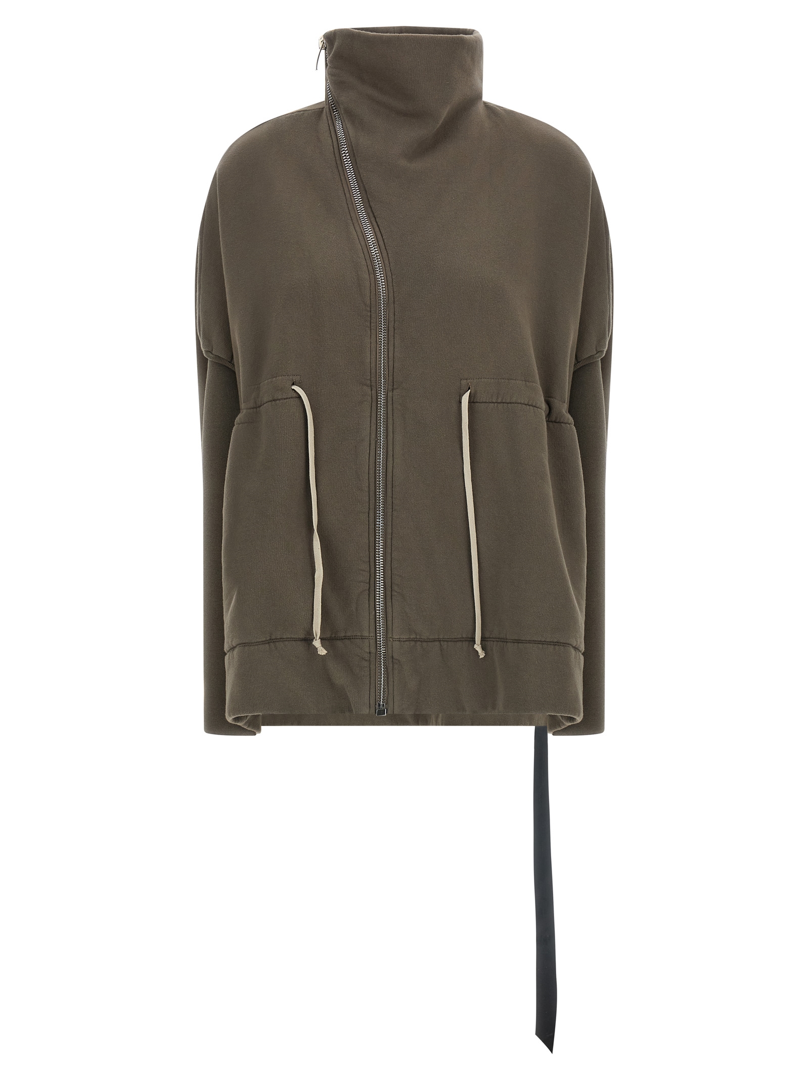 Mountain Sail' fleece cotton sweatshirt, high neck, front asymmetrical zip closure, drawstring at the waist, pockets, long honeycomb cotton sleeves with dropped shoulders and raw cut cuffs.