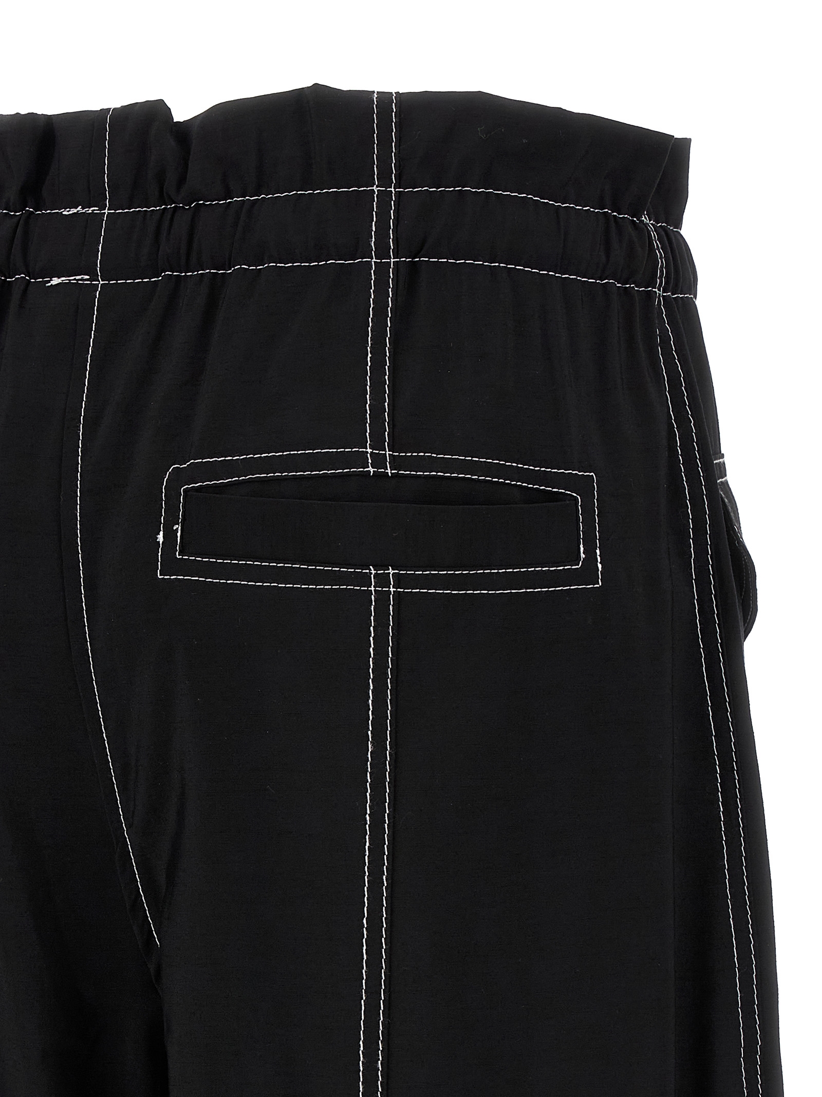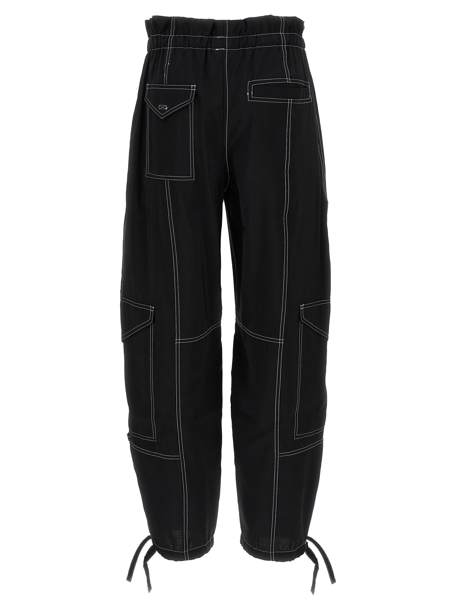 'Light Slub Pocket' viscose blend pants with contrast stitching, high waist style, adjustable drawstring elastic waistband, pockets, straight leg, ankle drawstring. SUSTAINABLE: This product is made with viscose LENZING™ ECOVERO,™ a sustainable viscose made from plant material and made using compounds found in nature.