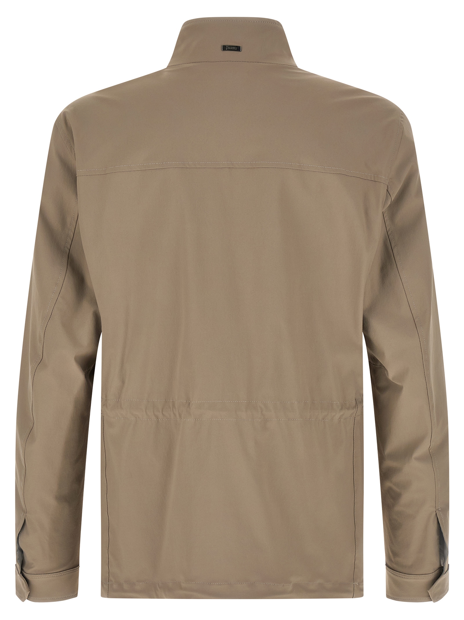 'Field' stretch nylon jacket with matt tear-effect wind and rain style, Saharan style, high neck, zip and snap button closure on the front, pockets, drawstring at the waist, long sleeves with cuffs, inner backpack braces.