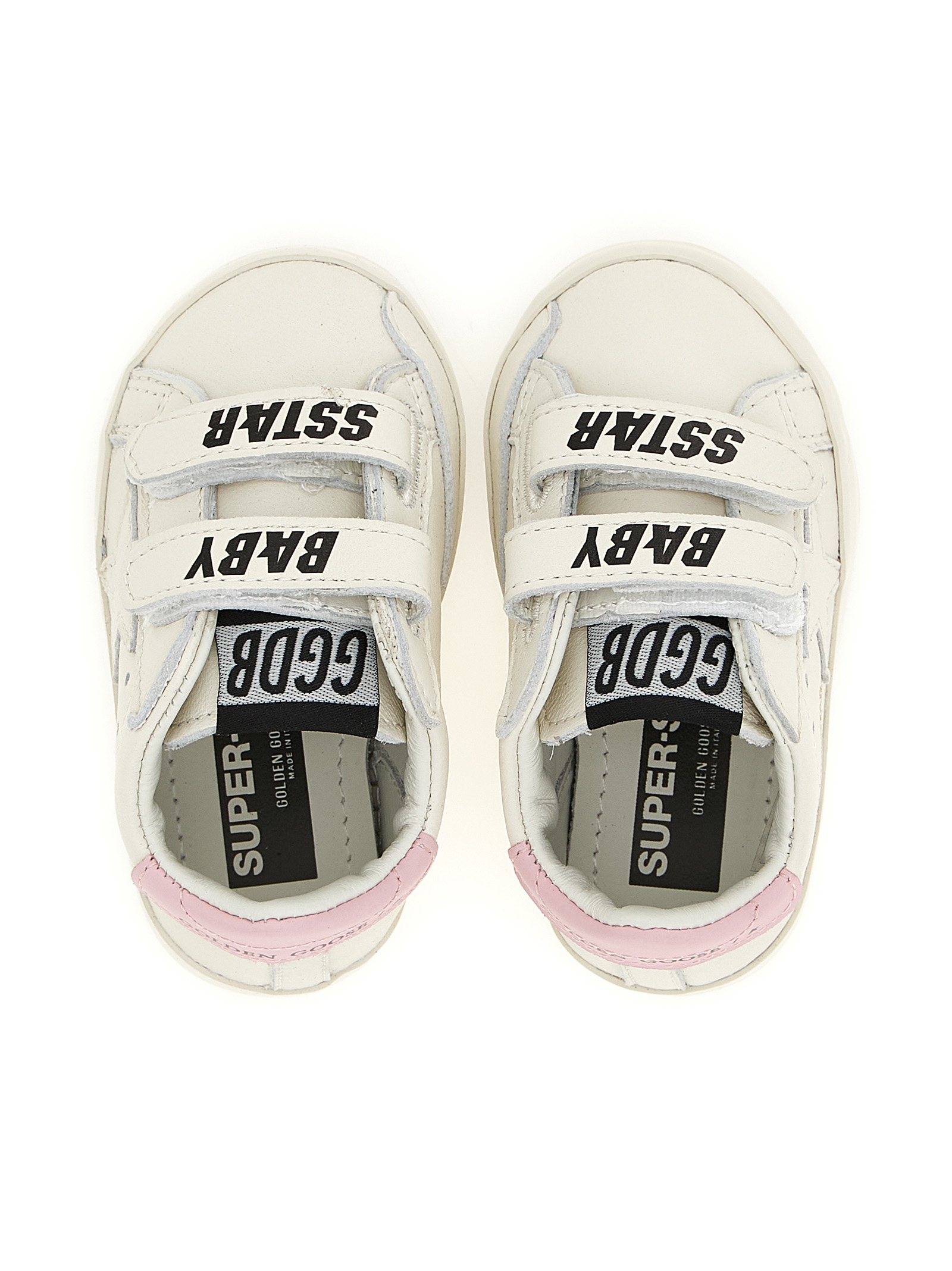 Sneaker + socks set 2-pack 'Baby School' consisting of leather sneakers, contrast embossed logo heel, adjustable velcro straps, rubber sole and 2-pack cotton socks with ribbed detail and inlay logo.