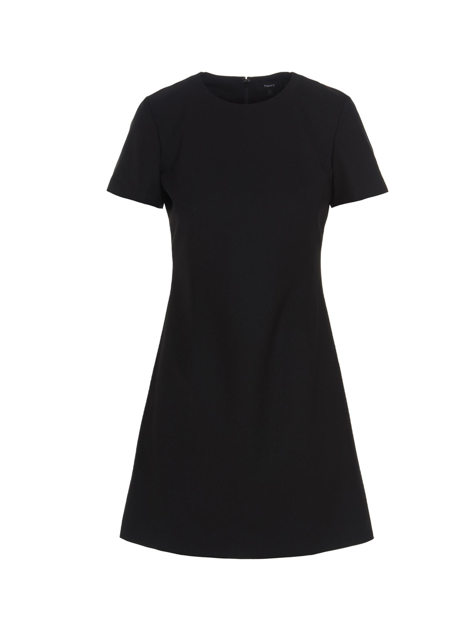 Stretch wool 'Jatinn' mini dress, cupro lining, crew neck, short sleeve, back zipper closure.