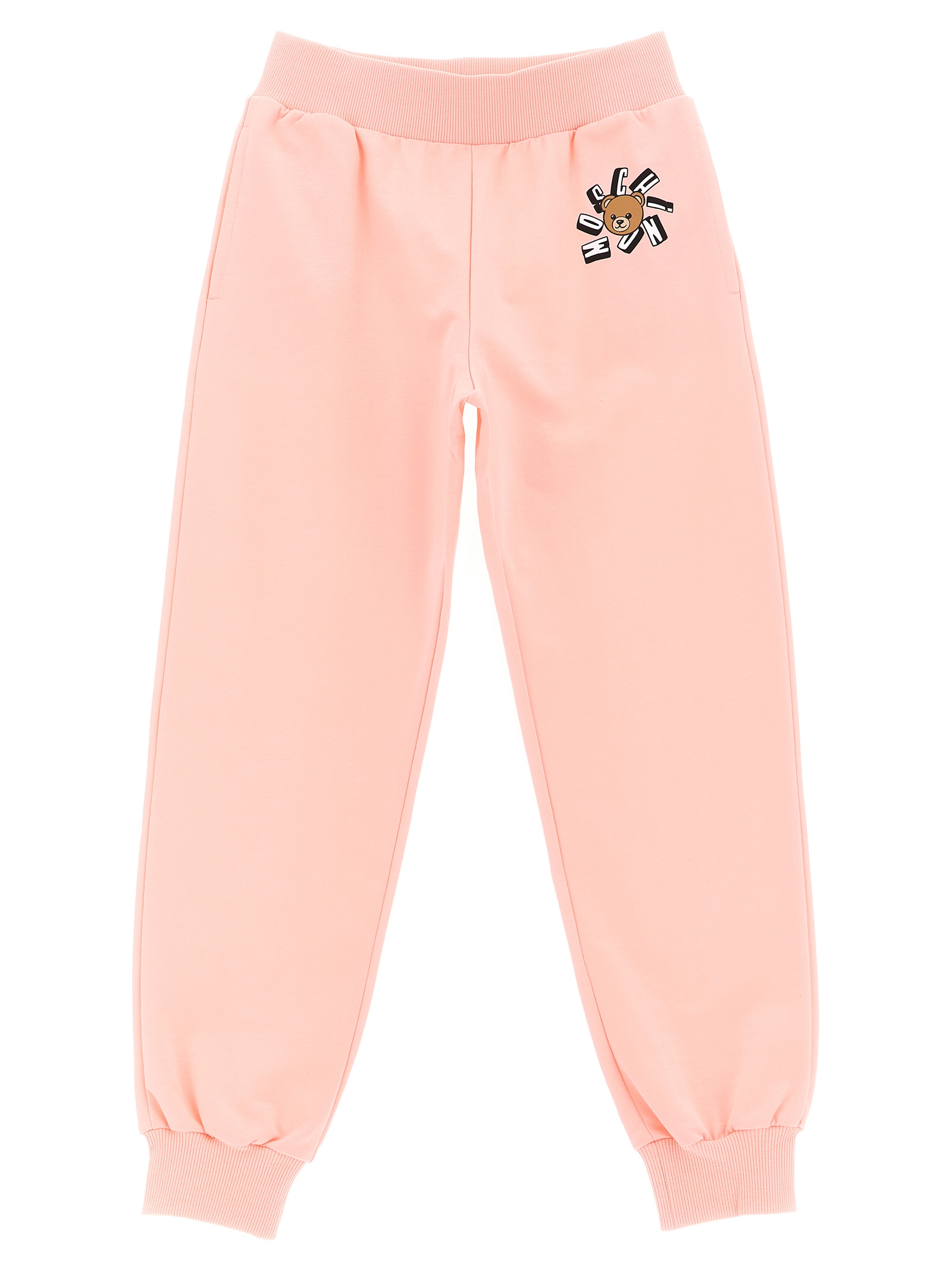 Gauze cotton tracksuit with front 'Moschino Teddy Bear' print consisting of hoodie, front zip closure, pockets, long cuffed sleeves, headband and joggers with elastic waistband, pockets and cuffs on the leg bottom.