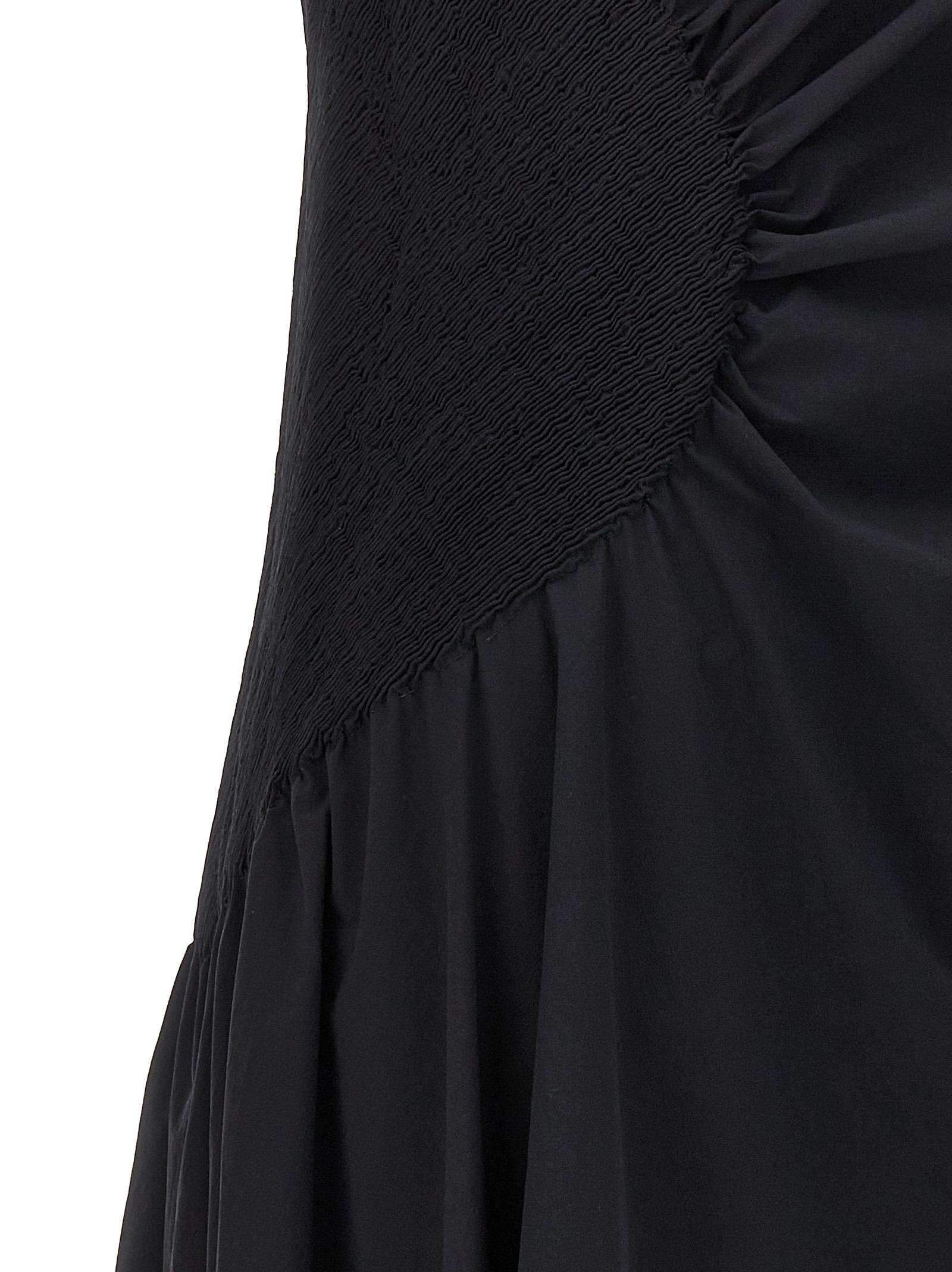'Eye of the bean' stretch tech fabric asymmetrical dress with side ruched detail.